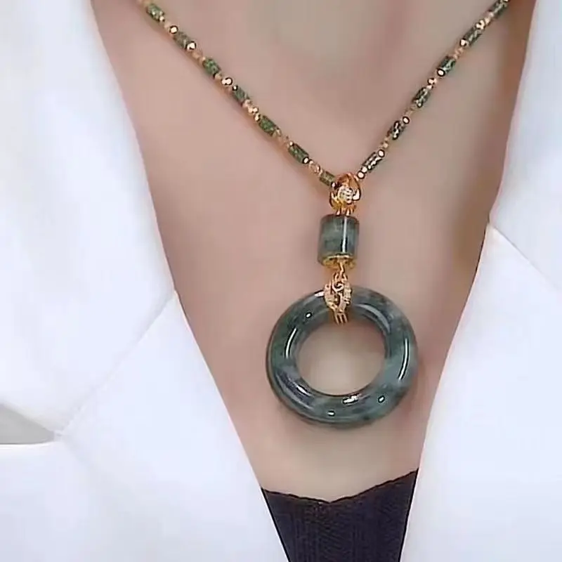 Review New Hot Natural Stone Crystal Necklace Green Alloy Lucky Pendant Necklace Daily Wear Simple Accessories.