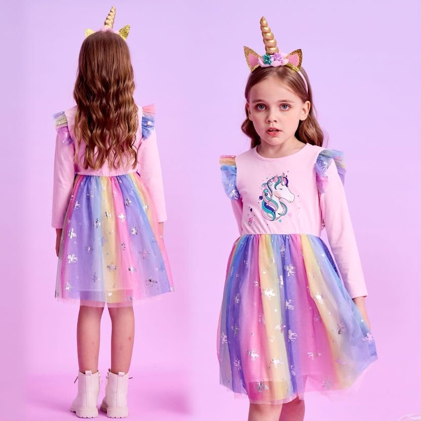 VIKITA Little Girl Dress Winter Rainbow Skirt Christmas Party Dresses for Girls 2-8 Years (LH4871, 6T)