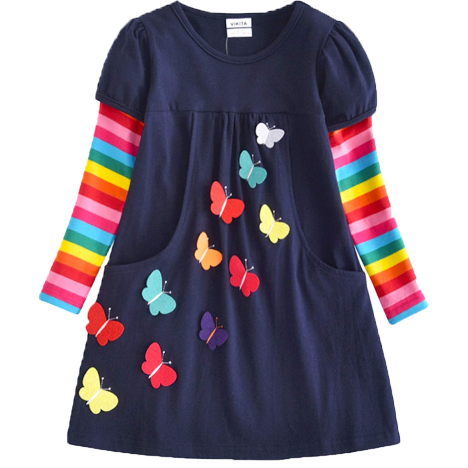 VIKITA Little Girls Dresses Winter Girl Clothes Long Sleeve Navy Dress Xmas Gift for Kids 2-8 Years LH5805, 7T