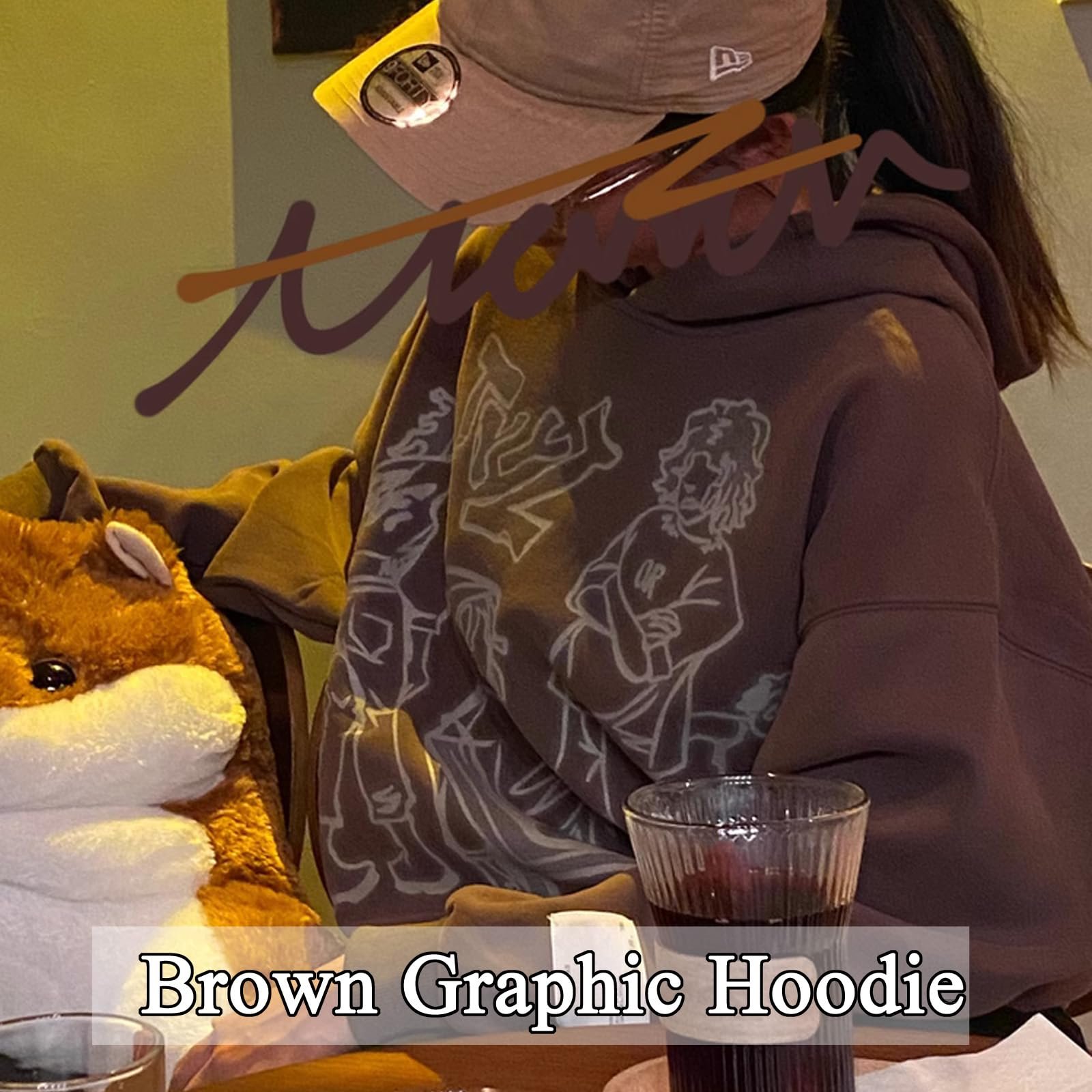 POOPMOOM Y2k Hoodie Men Women Aesthetic Graphic Hoodies Pullover Sweatshirt Hip Hop Goth Grunge Harajuku Jacket, 1-brown, Large