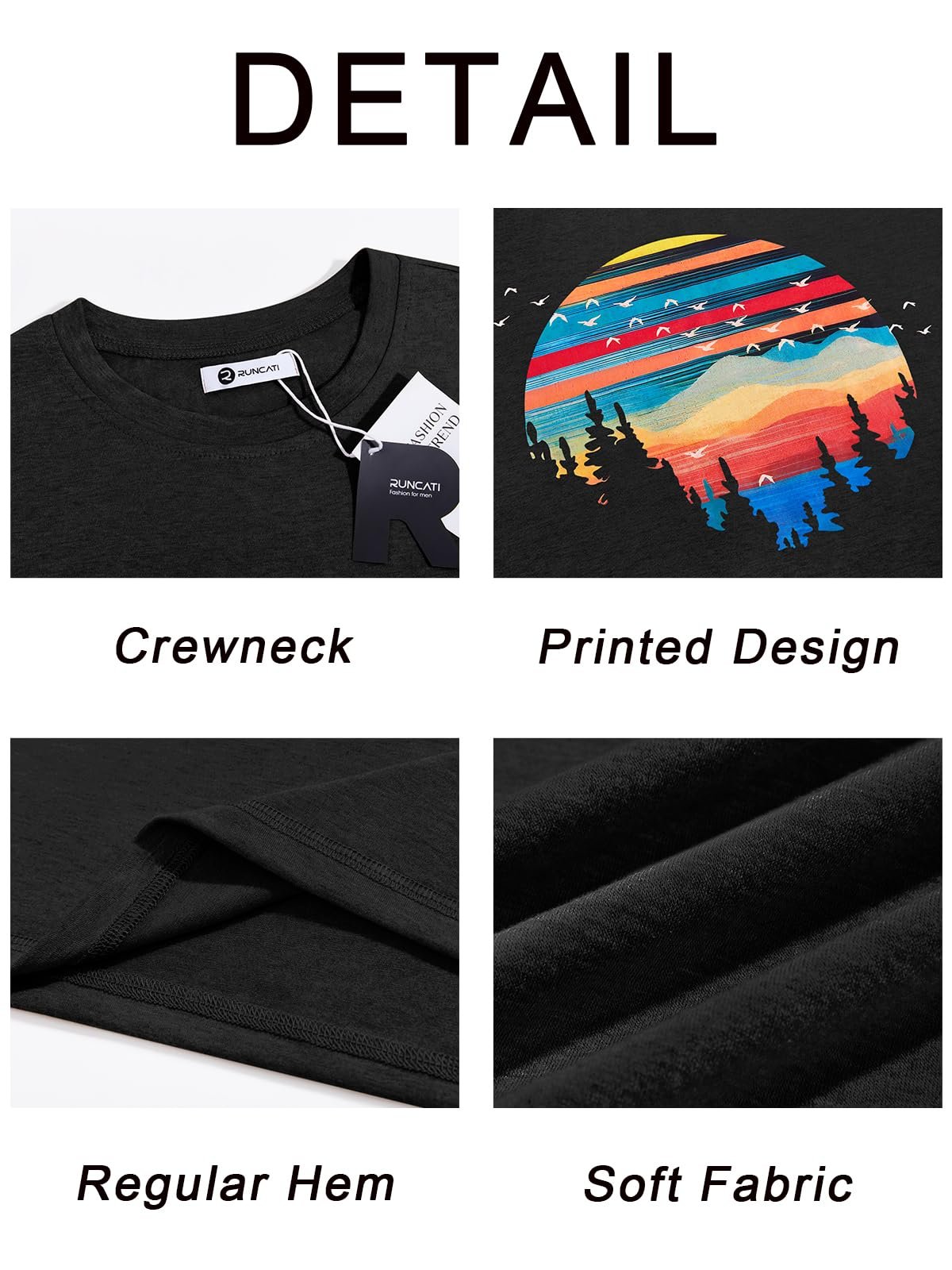 Runcati Mens Short Sleeve T-Shirts Graphic Crewneck Casual Printed Tee Summer Beach Hawaiian Vintage Shirts Black