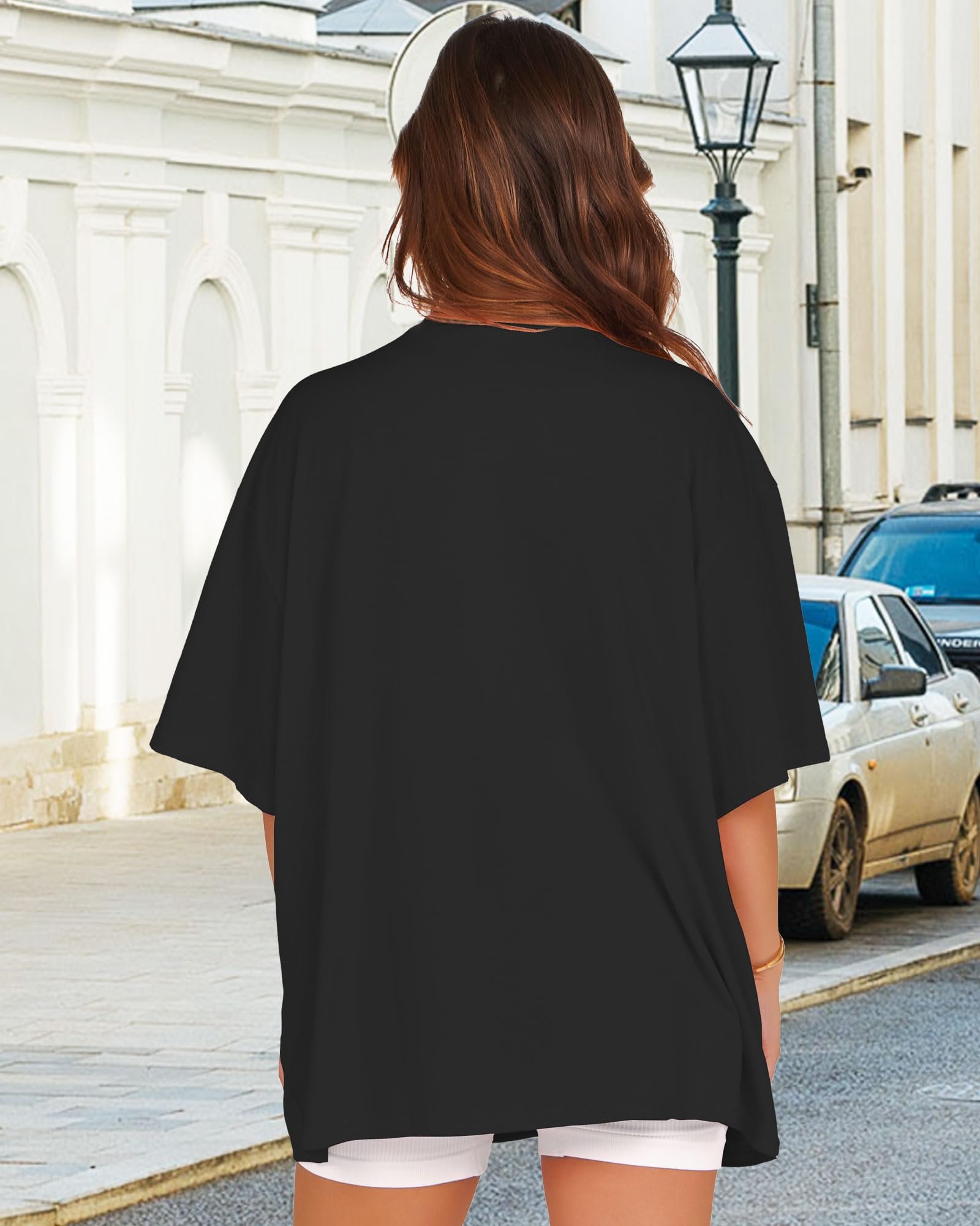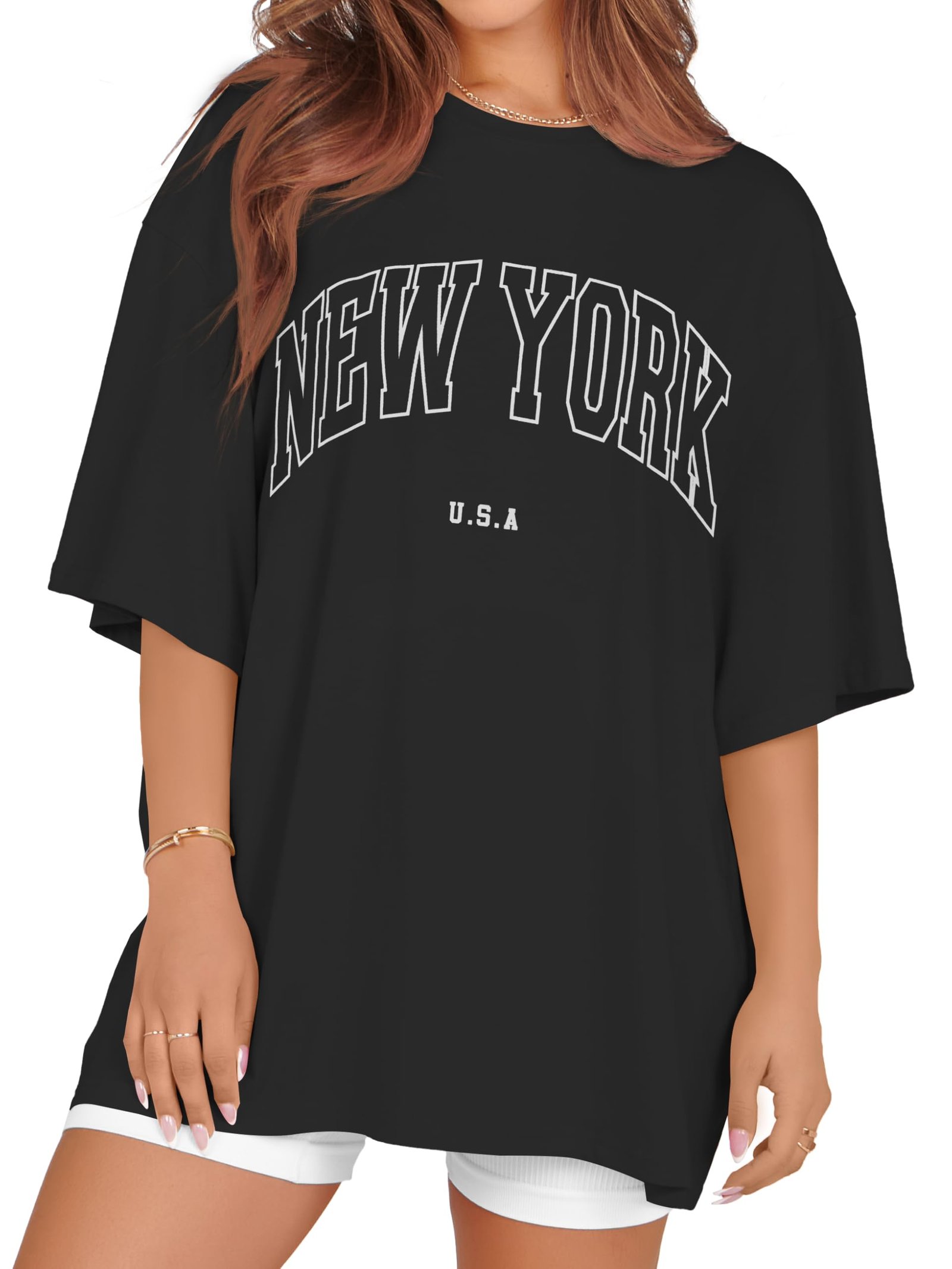 rosemia Oversized Tshirts for Women Summer Short Sleeve Round Neck Graphic Tee Shirt, Black New York, L