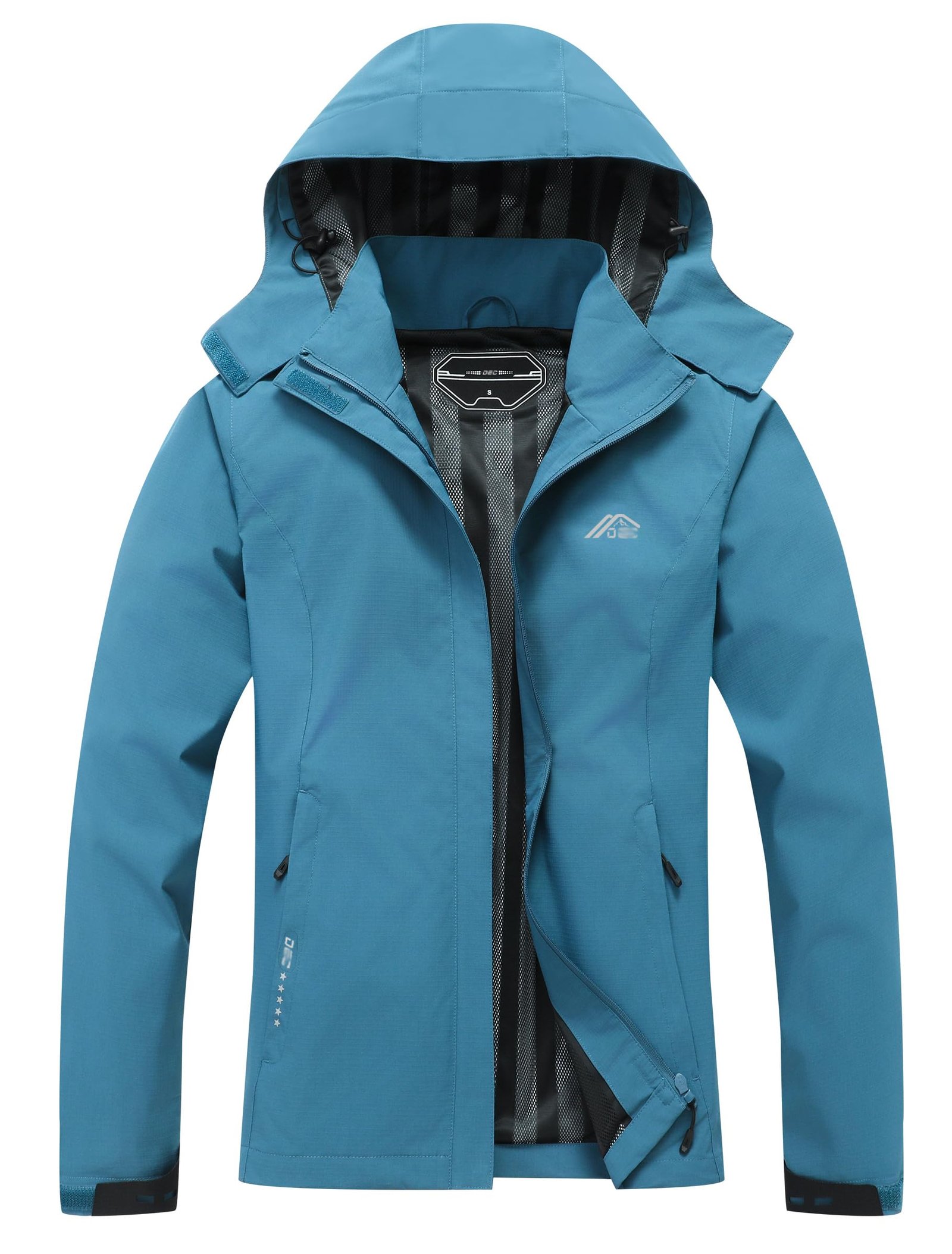 Women’s Waterproof Raincoat Lightweight Rain Jacket Detachable Hood Travel Outdoor Mosaic Blue L