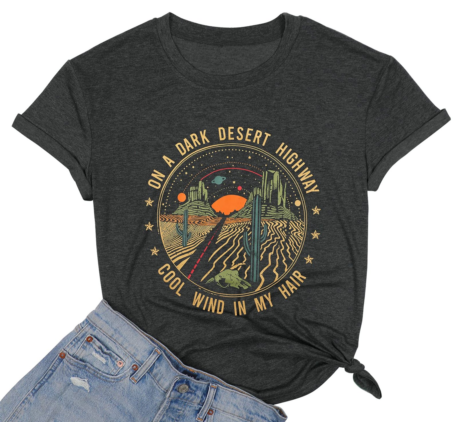 TAOHONG Adventure Shirts Women Retro Desert Highway T-Shirt Funny Nature Graphic Tee Casual Short Sleeve Tee Tops