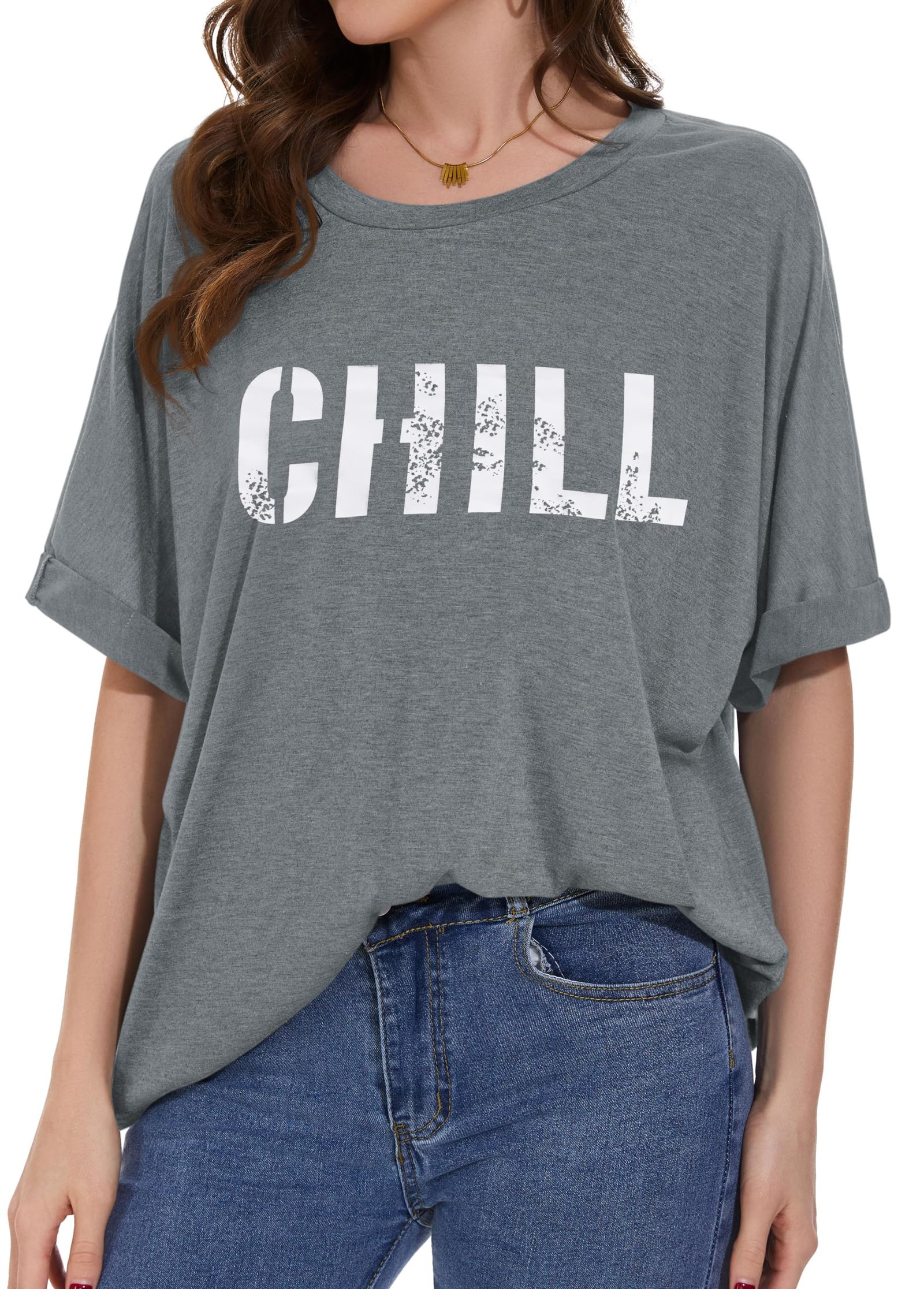 Oversized T-Shirt for Women Summer Short Sleeve Casual Basic Tee Tops Loose Fit Shirts(Grey White Letters,X-Large)