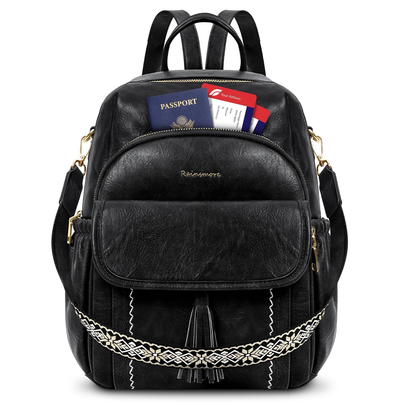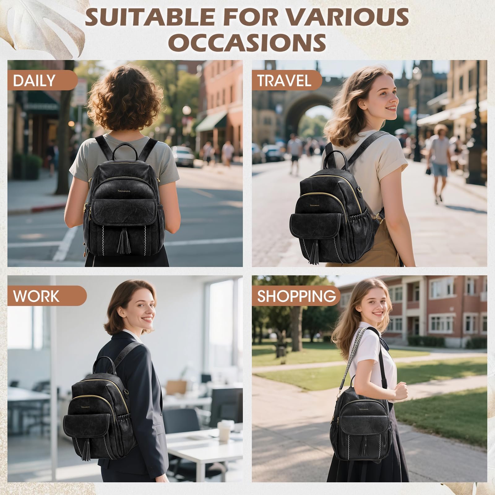 RAINSMORE Backpack Purse for Women Fashion Leather Waterproof Casual Small Travel Backpack Convertible Ladies Shoulder Bag, Black