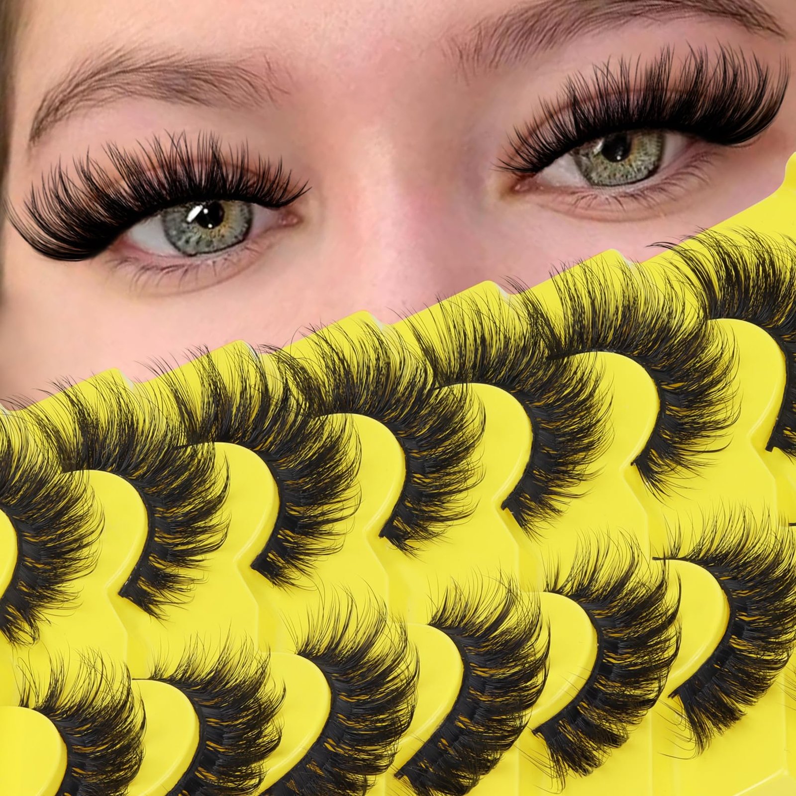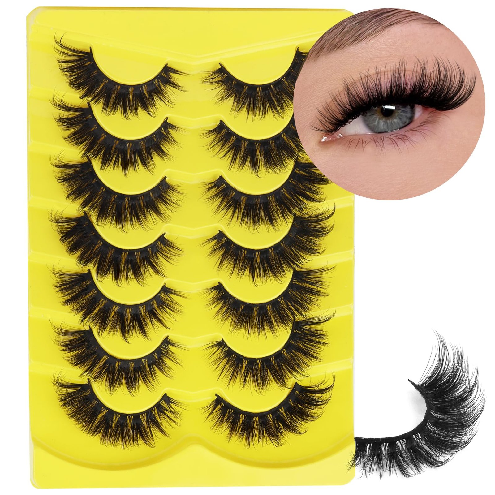 Ahrikiss Lashes Fluffy Cat Eye Lashes 3D Volume False Eyelashes Faux Mink Eyelashes 10-20mm Thick Fox Eye Lashes Soft Wispy Lash Strips 7 Pairs Pack (Foxtail)