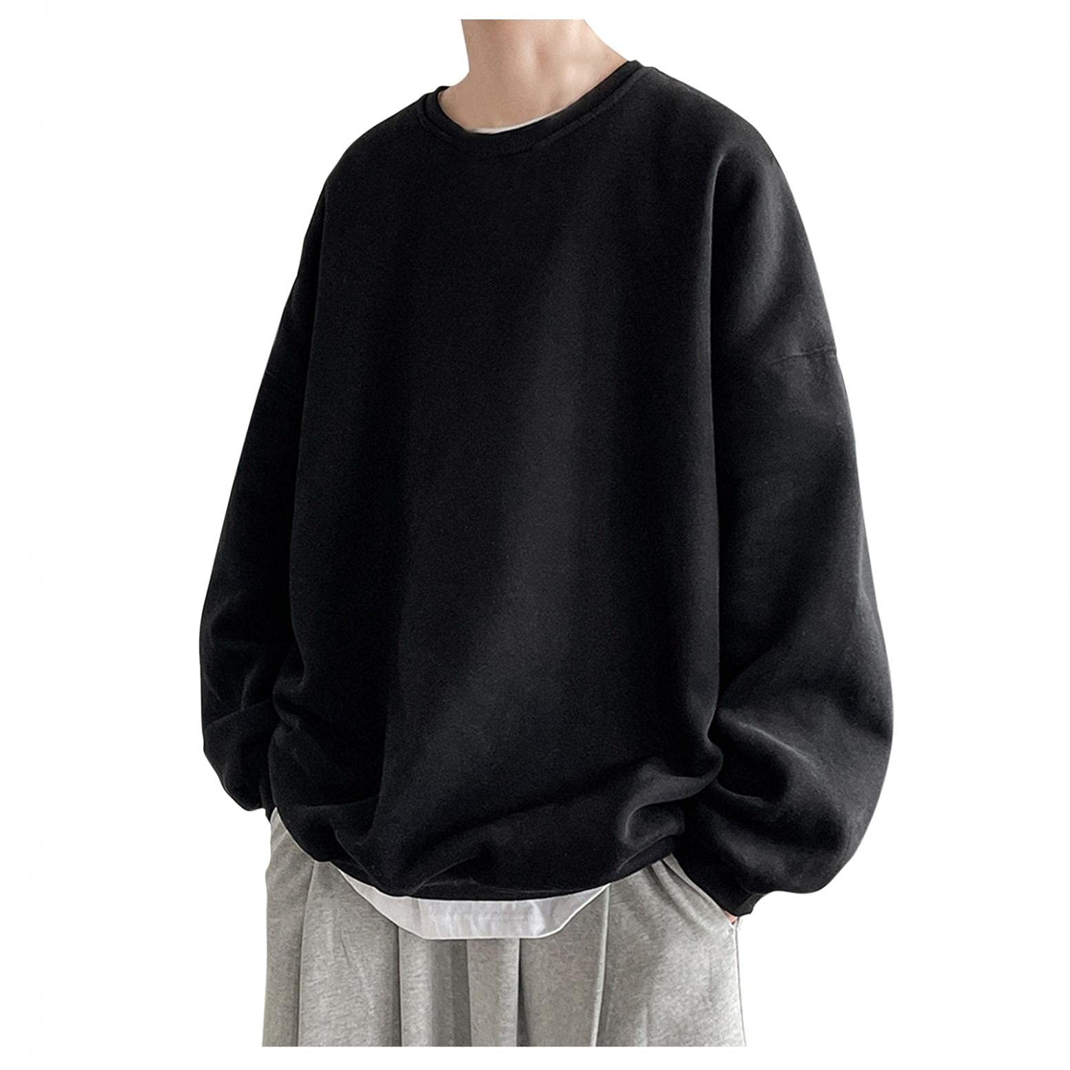 HGOOGY Mens Pullover Sweatshirt Big and Tall Casual Crewneck Oversized Sweater Relaxed Fit Solid Base Shirt Tops(S-5XL), A-black, X-Large