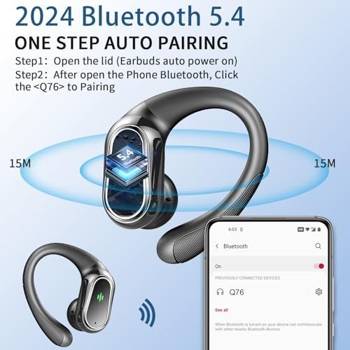 Wireless Earbuds, Bluetooth 5.4 Headphones Sport, LED Display Bluetooth Earbuds with ENC Noise Canceling Mic, 50H Stereo Wireless Headphones, Deep Black