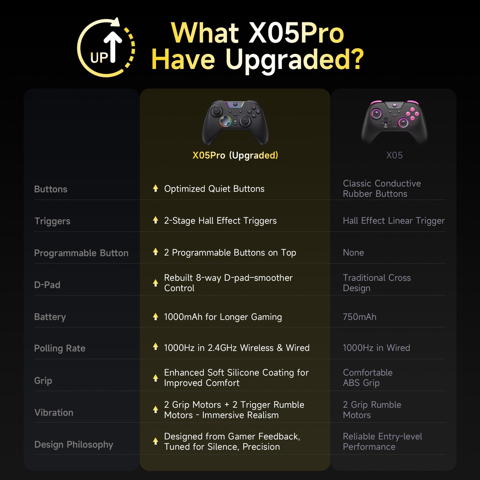 EasySMX X05 Pro Wireless PC Controller, Upgraded 2-Stage Triggers,Mute Buttons,Hall Joysticks,1000Hz Polling, 8-Way D-Pad, 1000mAh Battery, Multi-Platform Controller for PC/Switch/Android/iOS, Black