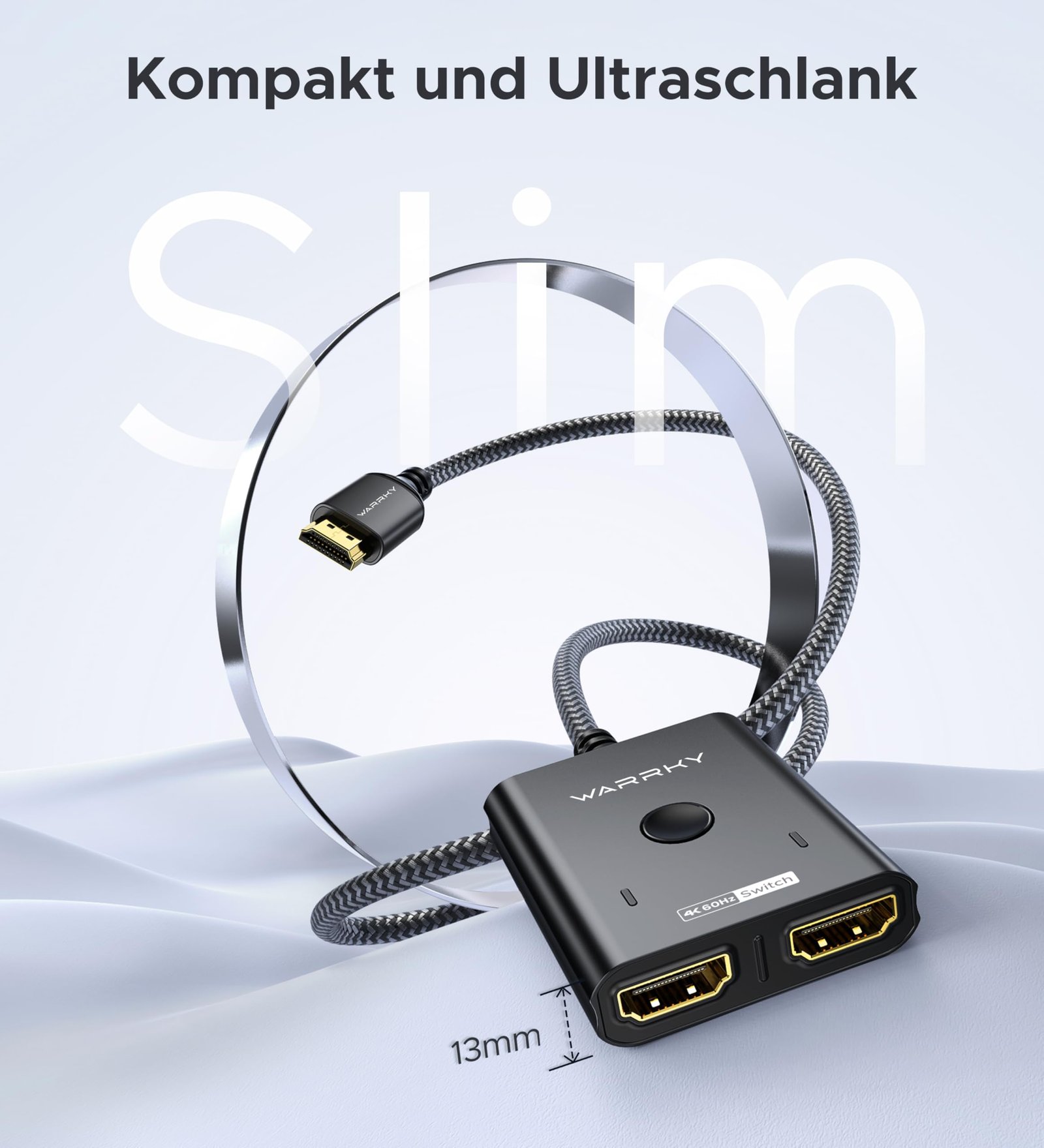 HDMI Switch 2 in 1 Out 4K@60Hz, WARRKY [3.3ft Fixed Braided HDMI Cable, Aluminum Case, HDCP 2.2] Bidirectional 2×1 Switcher Splitter UHD Compatible for PS5/4, Nintendo Switch, Roku, FireStick – Black
