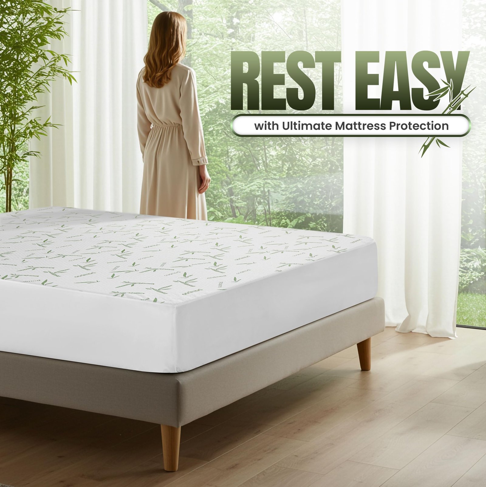 Utopia Bedding Waterproof Mattress Protector Queen Size, Viscose Made from Bamboo Mattress Cover 200 GSM, Fits 17 Inches Deep, Breathable, Fitted Style with Stretchable Pockets