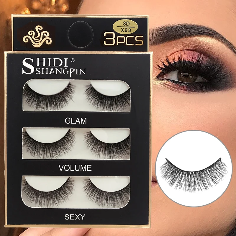 Faux Cils 3 pairs False Eyelashes Natural Long 3D Mink Lashes Soft Fluffy Wispy Handmade Fake Lashes