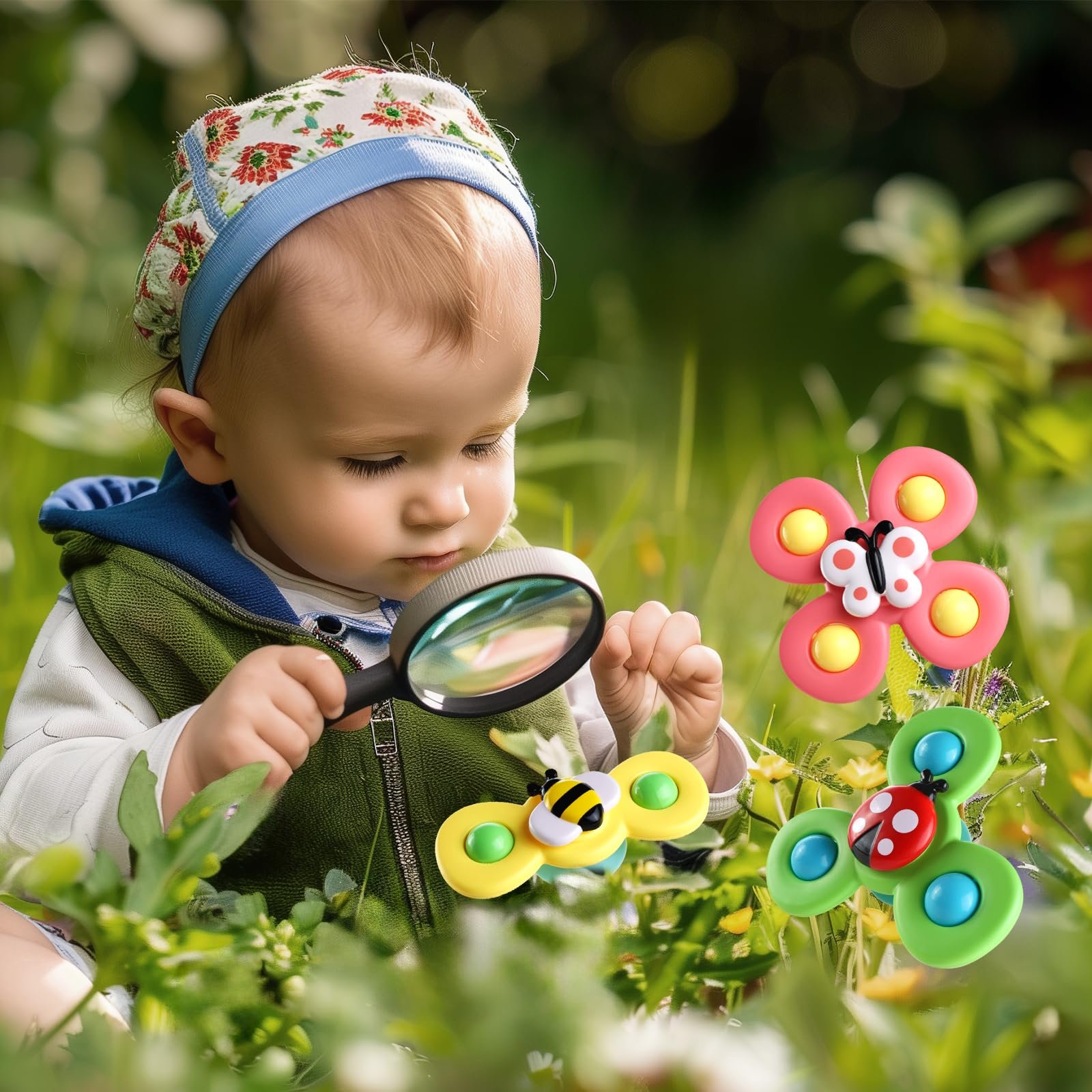 ALASOU 3PCS Suction Cup Spinner Toys for 1 Year Old Boy Girl|Spinning Top 12 18 Months|1 2 Year Old Boy Birthday Gift|Baby Bath Toy for Kids Ages 1-3|Sensory Airplane Travel Toy for Infant Toddlers