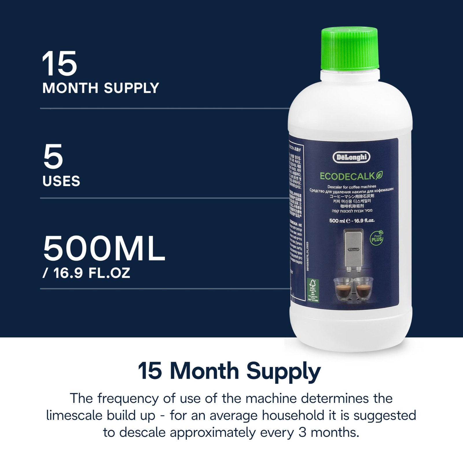 De’Longhi EcoDecalk Descaler, Eco-Friendly Universal Descaling Solution for Coffee & Espresso Machines, 16.90 oz (5 uses)