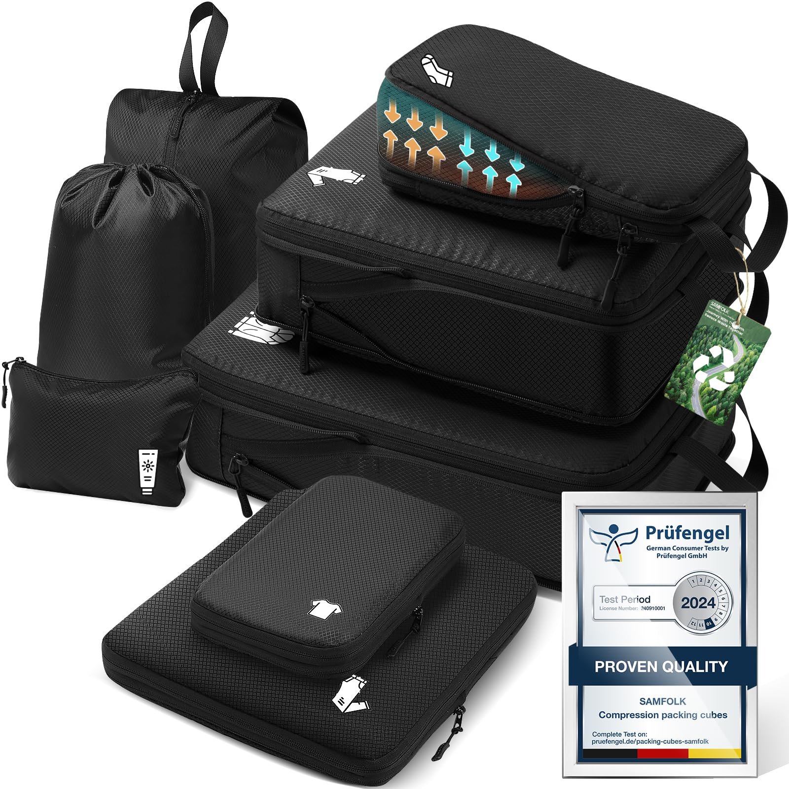 Compression Packing Cubes for Suitcases, Ultralight Packing Cubes for Backpack Waterproof Luggage Packing Organizers Expandable Packing Cubes for Travel Accessories and Essentials 8 Set Black