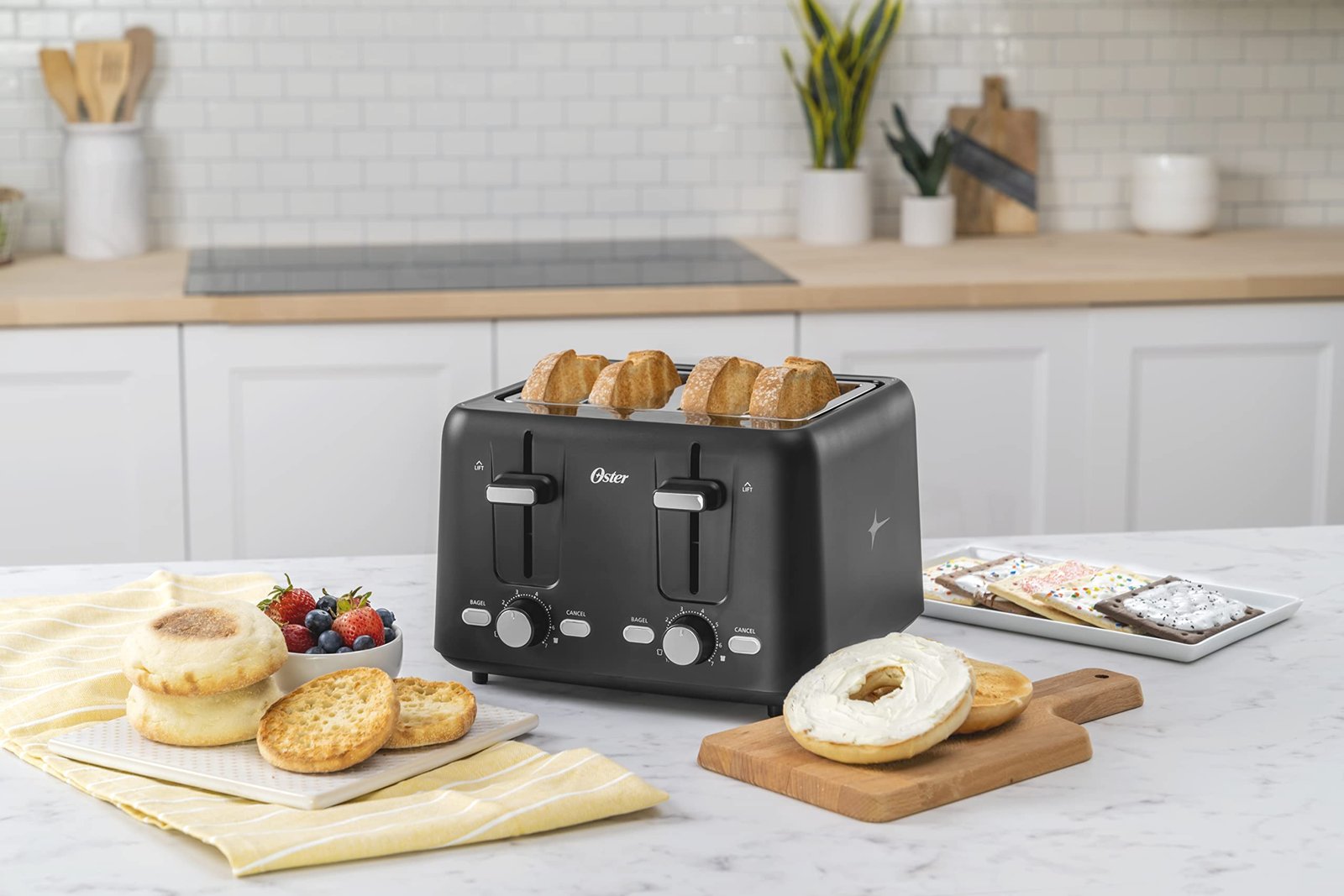 Oster 4-Slice Toaster with Bagel and Reheat Settings and Extra-Wide Slots, Black