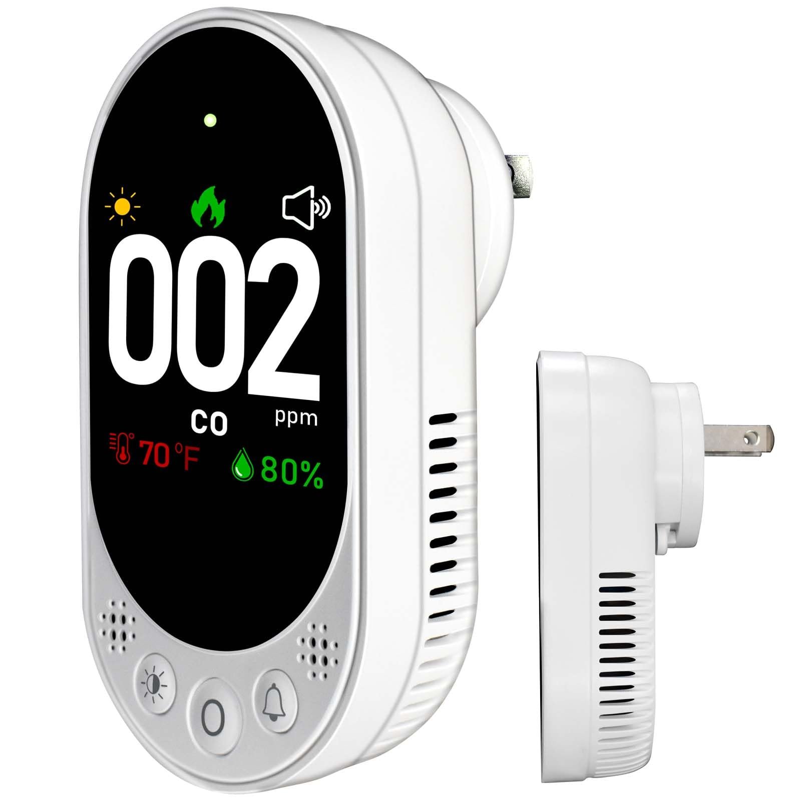 LSENLTY Carbon Monoxide Detector Plug in, Check CO, Temp and Humidity, HD Screen&Indicator Visual&Audible Alert for Home RV Camping