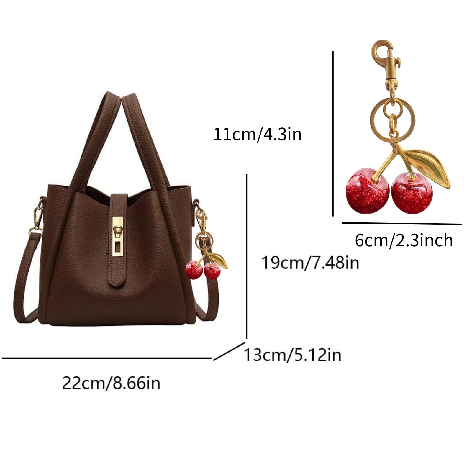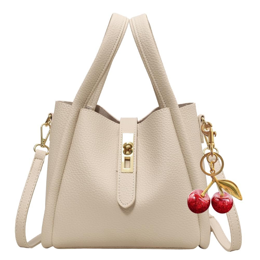 Trendy Bucket Crossbody Bag for Women Designer Handbags women Tote Bag for Women Shoulder bag with Cute Cherry Bag pendant (White)