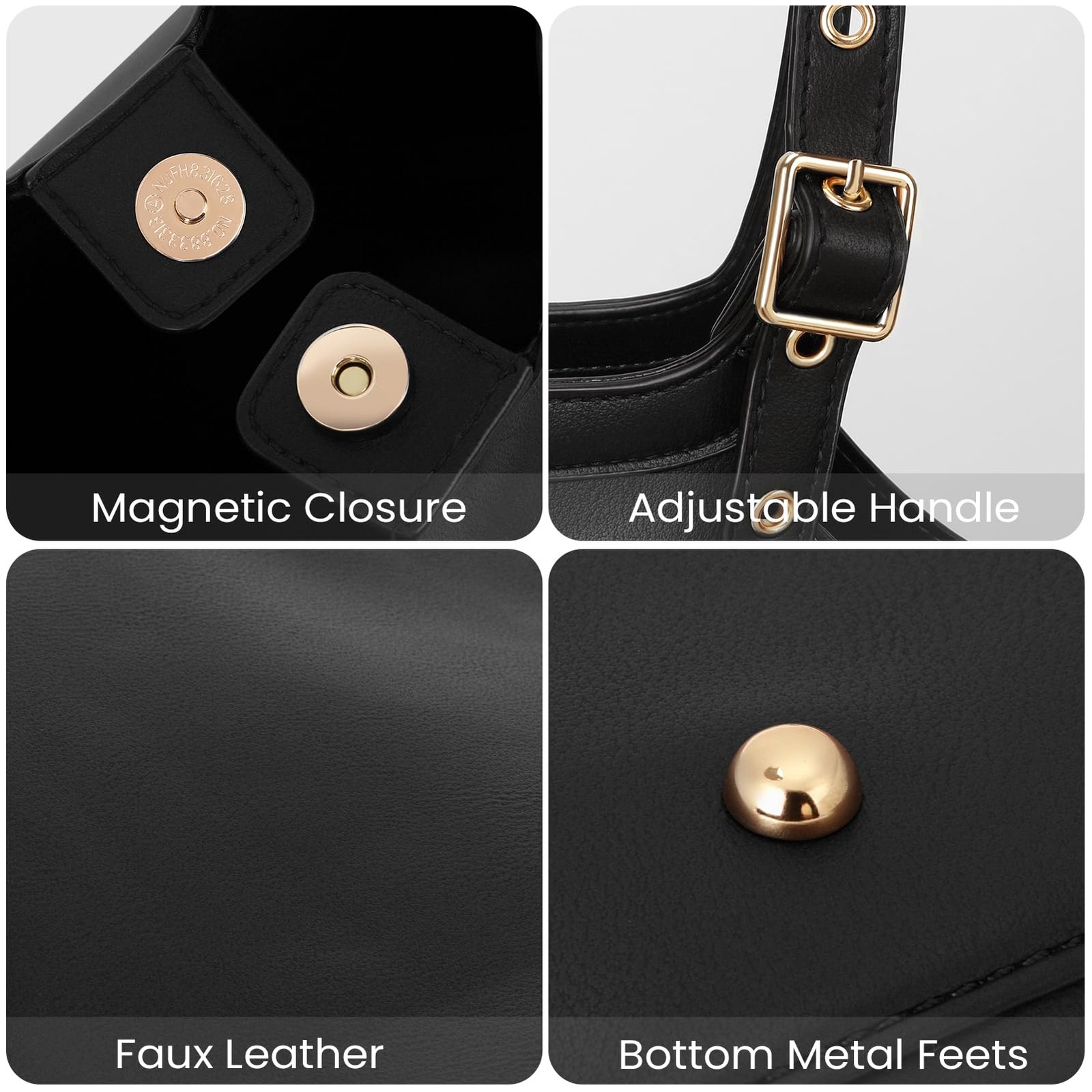 NIUEIMEE ZHOU Hobo Handbags for Women Retro Vegan Leather Clutch Purse Tote Shoulder Bags, Black, One Size, Elegant