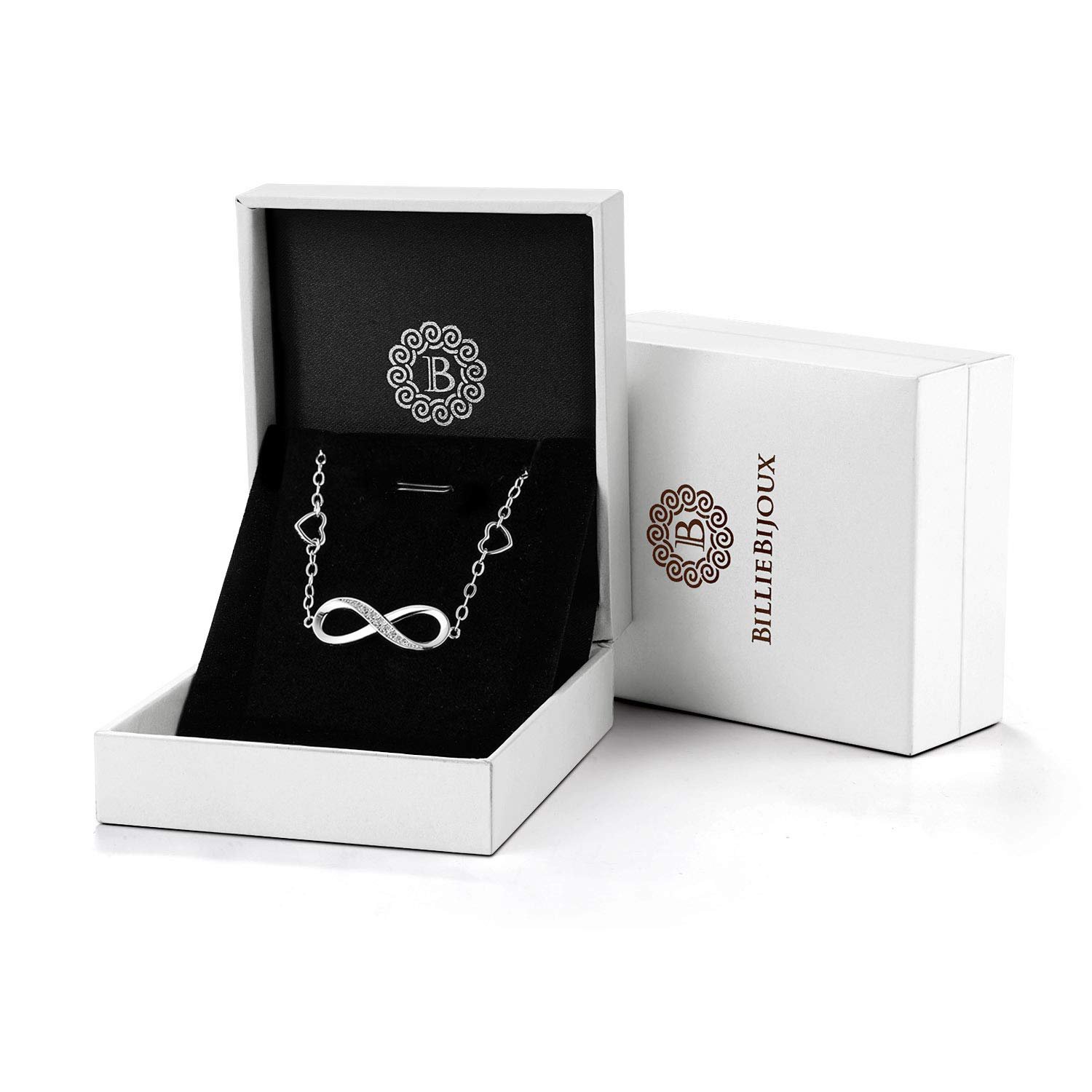 Billie Bijoux 925 Sterling Silver Necklace Bracelet One Sets Forever Love” Infinity Heart Love Jewelry Sets White Gold Plated Diamond Women Necklace Gift (A-Silver)