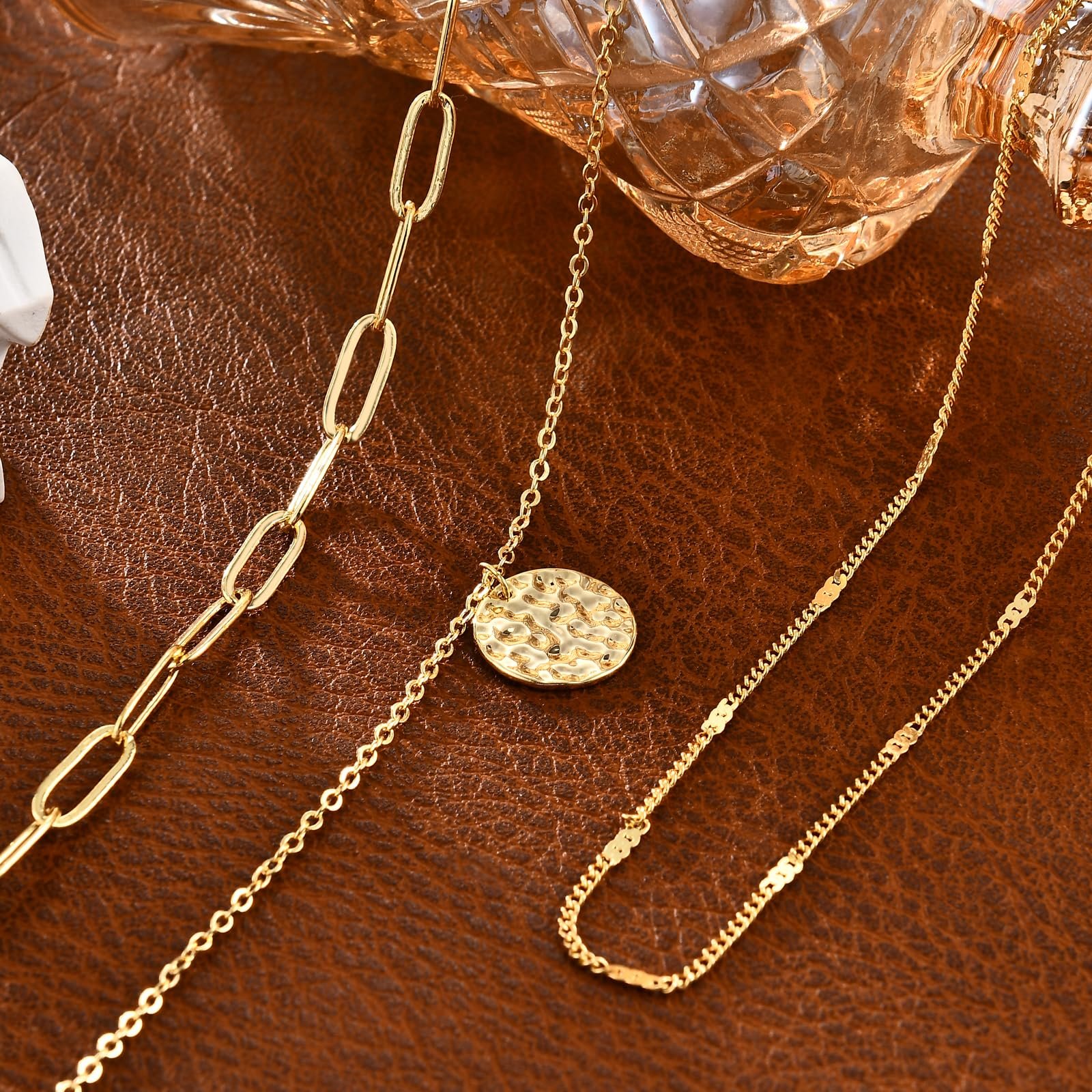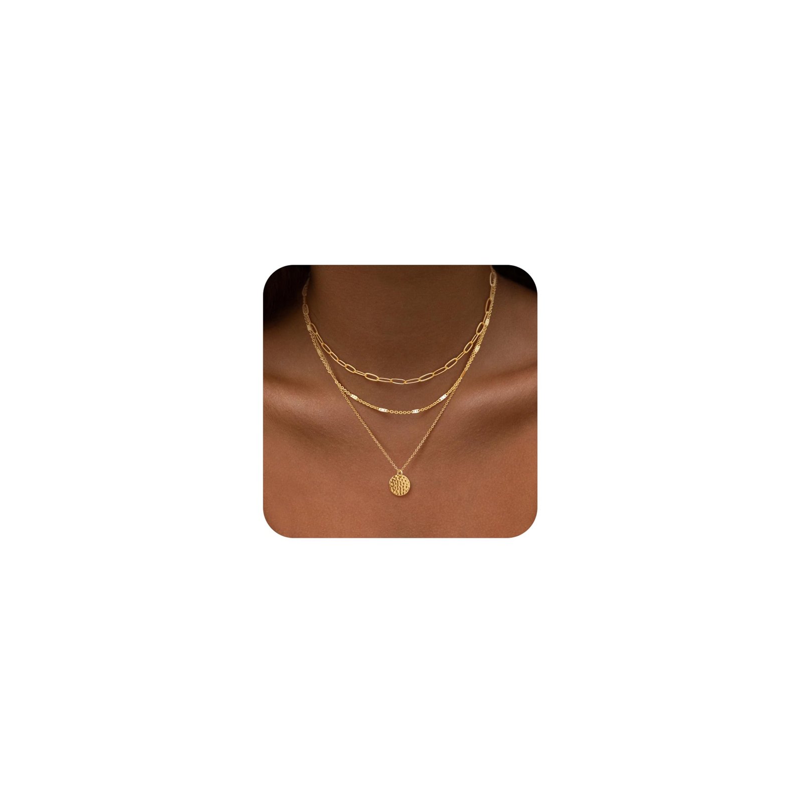 STRIVIIO Gold Layered Necklaces for Women, 14K Gold Plated Dainty Necklace Set with Paperclip, Adjustable Trendy Gold Jewelry Stackable Gift