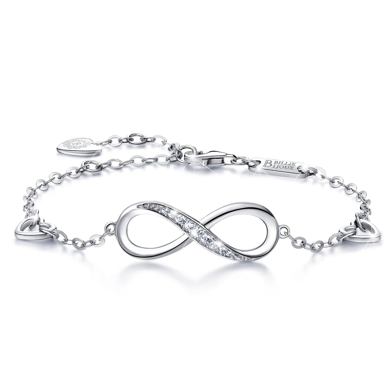 Billie Bijoux Bracelet for Women 925 Sterling Silver Infinity Endless Love Symbol Charm Adjustable Silver Bracelets for Women Gifts for Women Mom Wife