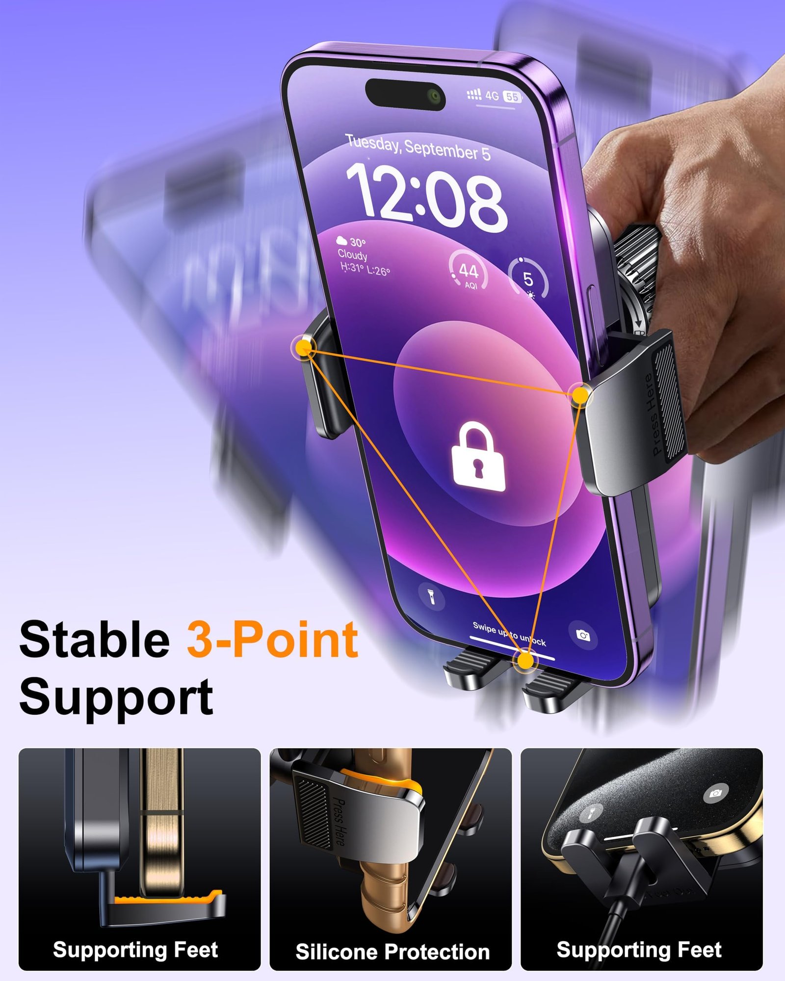Phone Holder Car, 3-in-1 Universal Car Phone Holder Mount Windshield Dashboard Air Vent Cell Phone Car Mount Hands Free Car Phone Handlebar Mount Fit for iPhone Android Smartphone Accessories