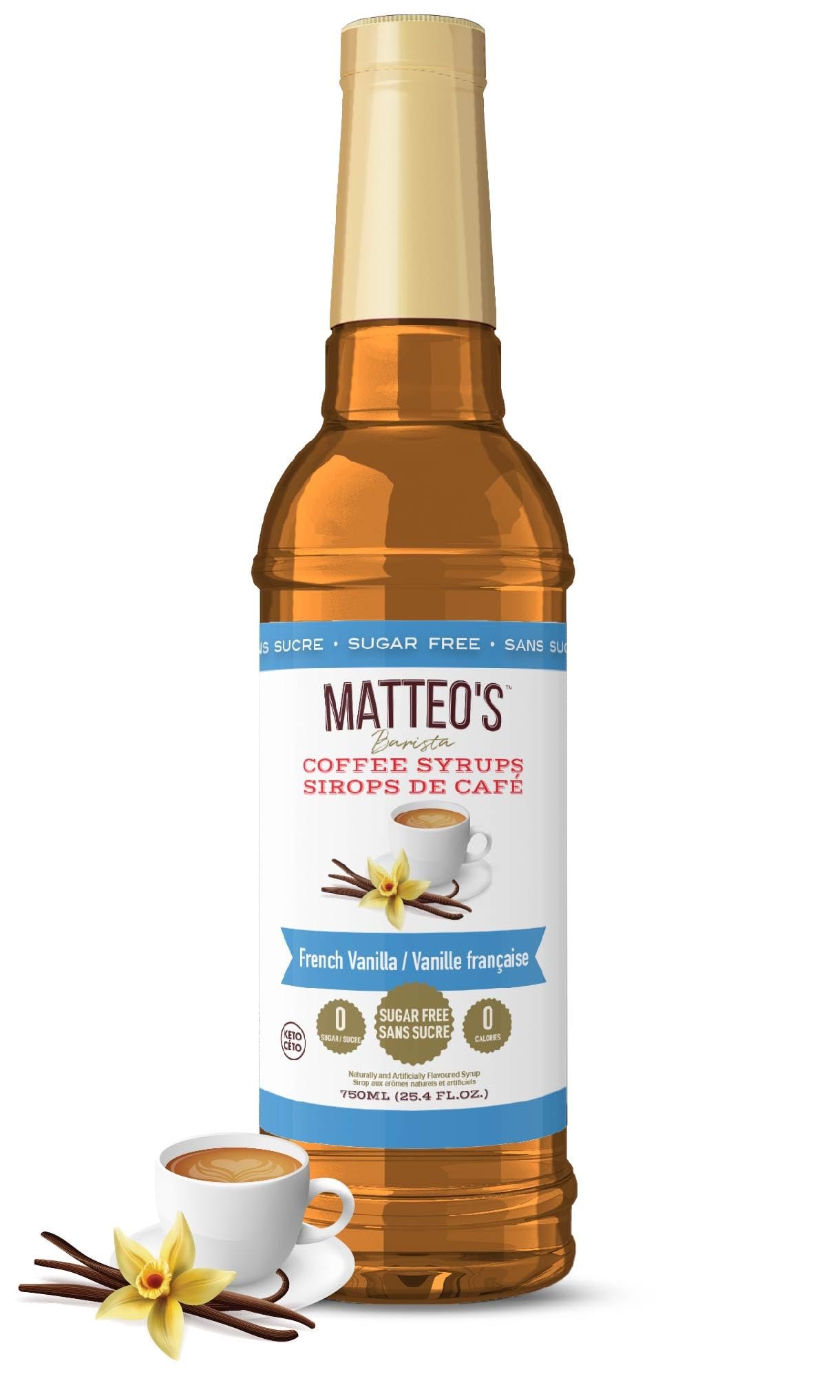 Matteo’s Barista Style Sugar-Free Coffee Syrup, French Vanilla Flavor, Zero Calorie and Sugar, Keto Friendly, Ideal for Latte, Cappuccino, Espresso, Americano, Indulgent Taste 25.4 Oz 1-Pack