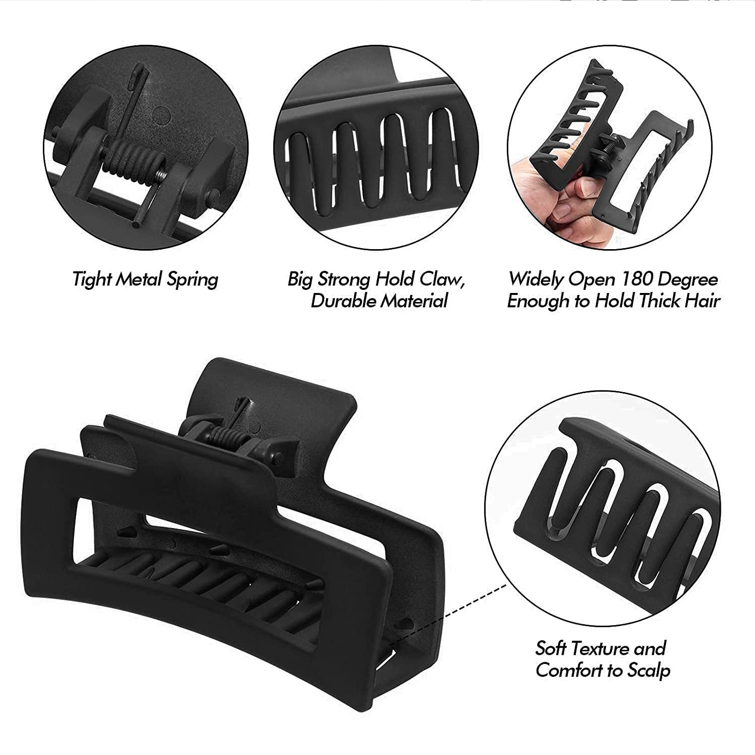 • ★【Texture】Made of high-quality plastic acrylic resin and alloy. The metal spring is covered with plastic, anti-rust and more durable. The large claws have 12 teeth clamps, which are Non- Slip, so it can hold the hair firmly. suitable for thin hair,thick hair.
