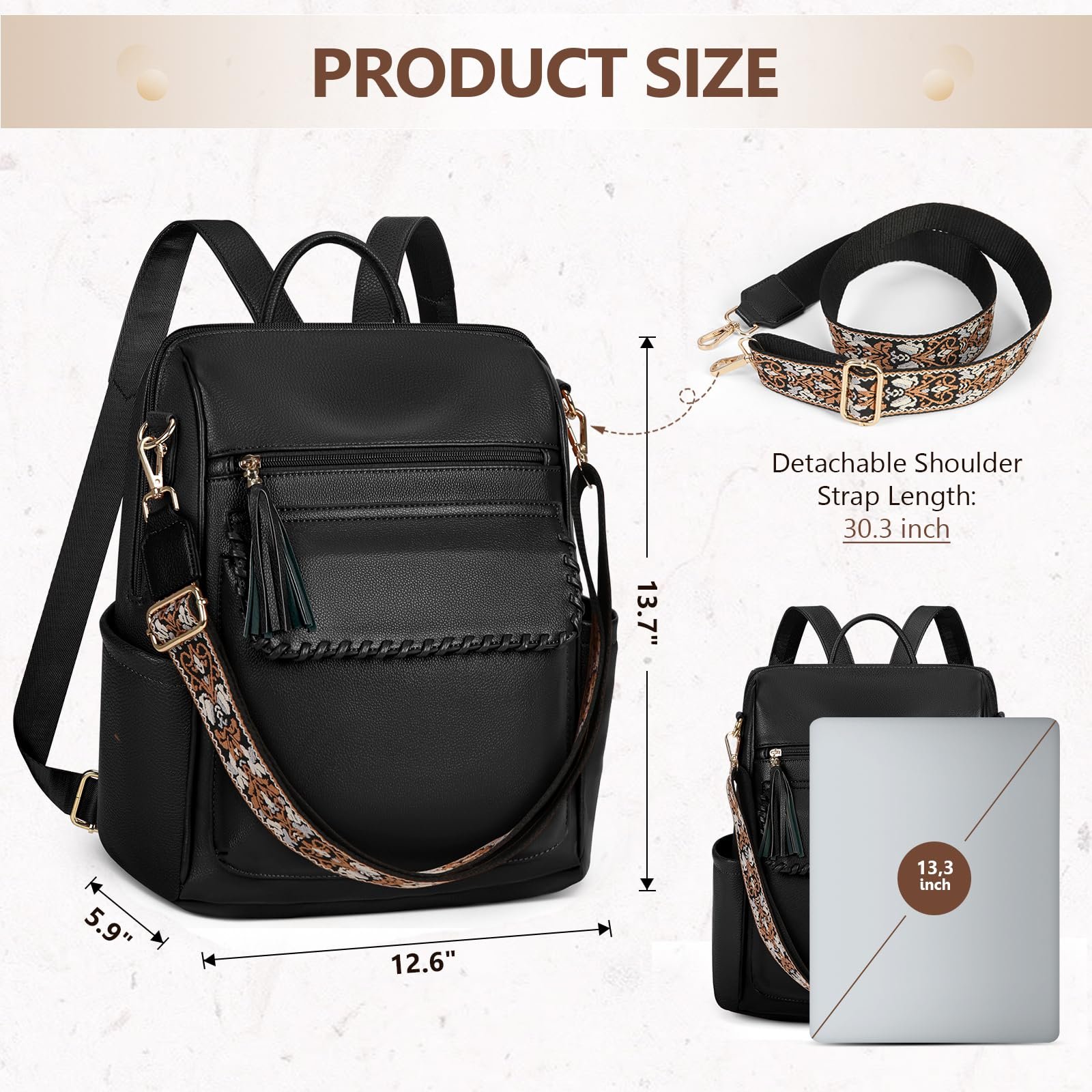 - 【High-Quality Leather Backpack】Women backpack purses are made of high-quality PU leather material with reinforced stitching, soft fabric lining, delicate tassel designed for fashion appearance and adjustable canvas shoulder straps for convenience.