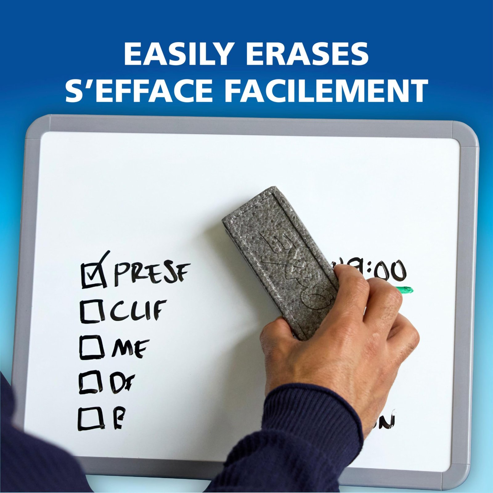 - Easily and cleanly erases with included EXPO eraser and cleaner spray