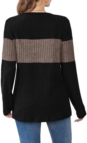 Review Fall Outfits for Women 2025 Long Sleeve Shirts Dressy Casual Tops Winter Clothing Trendy Sweaters Color Block Coffee.
