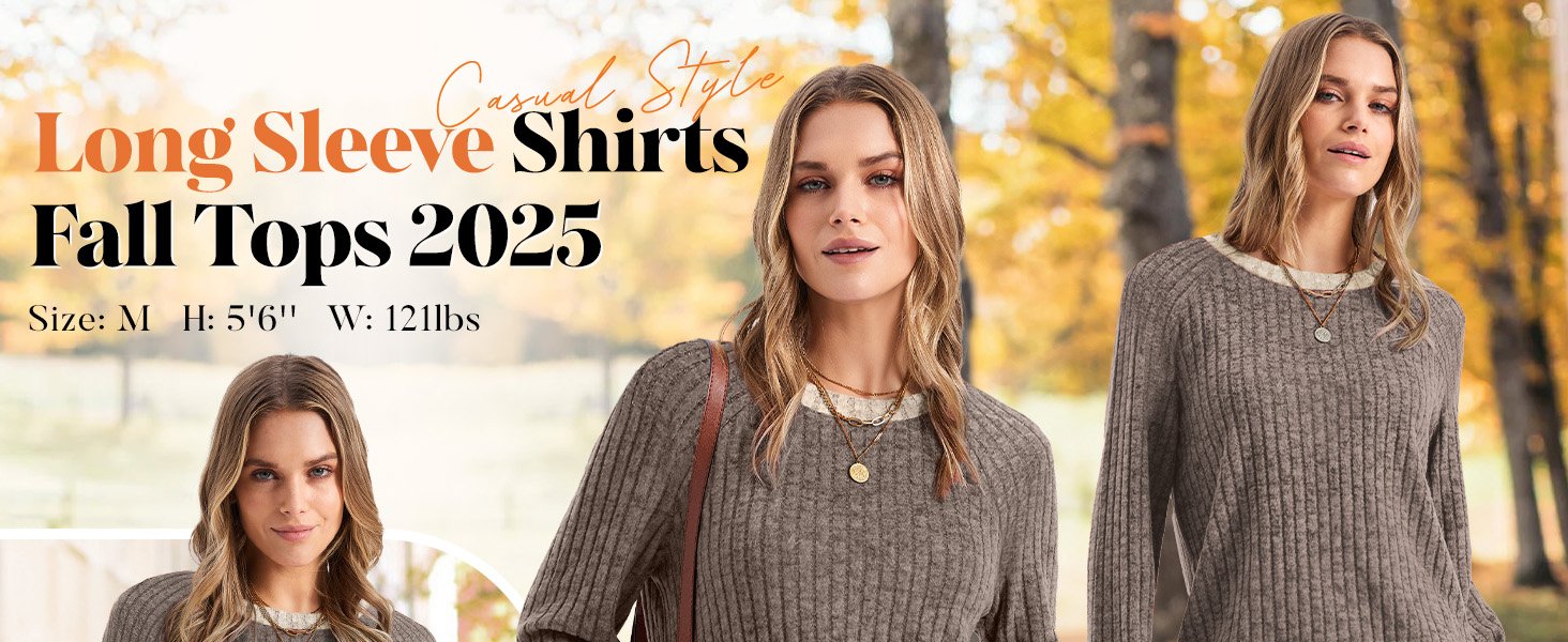 Review Fall Outfits for Women 2025 Winter Clothing Early Fall Fashion Must Have Chocolate Brown Clothes Long Sleeve Shirts for Women.