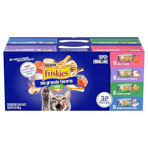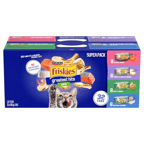 Review Friskies Greatest Hits Wet Cat Food, Pate Variety Pack 4 Flavours – 156 g Can (32 Pack).