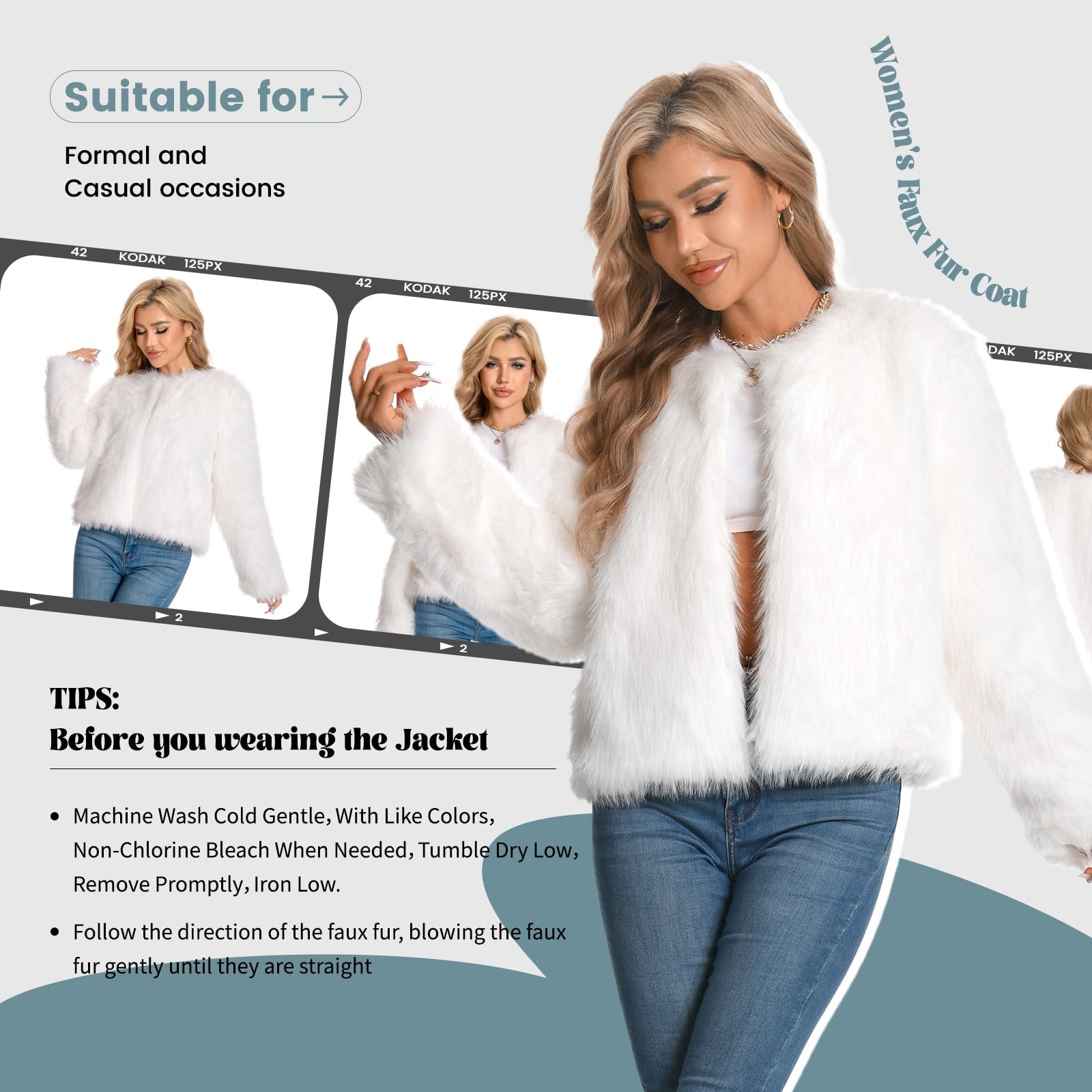 • 【APPLICABLE OCCASIONS】This Fuzzy Faux Fur Coat Making It Suits For Both Casual And Dressy Occasions. Fuzzy Cropped Faux Fur Jacket can match Jeans, Dresses, Or Skirts, suitable for Formal, Casual,Dinner Party Y2K or For Festival Costume, Like Halloween, Christmas, New Year. You Will Win Lots Of Compliments Wherever You Go.