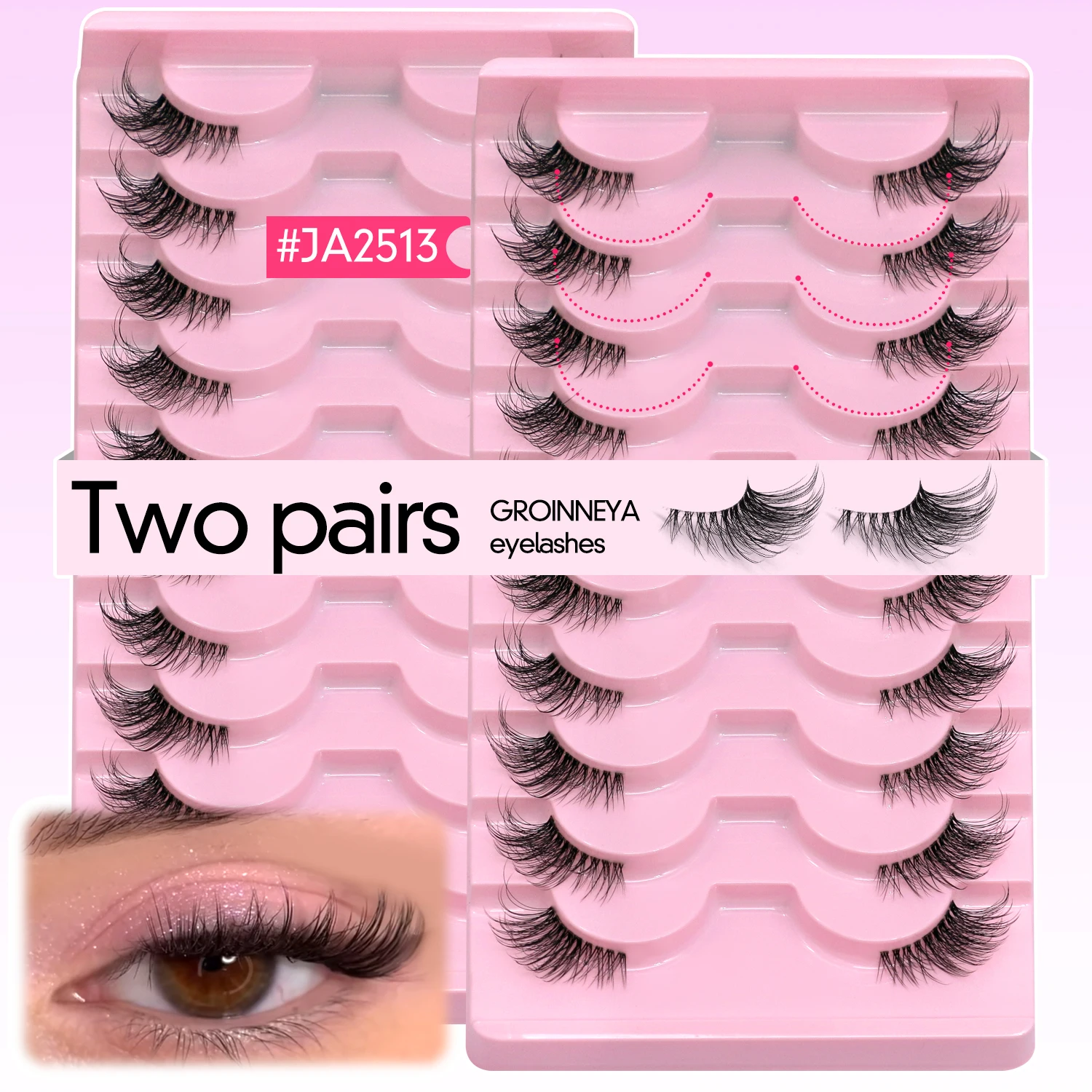 Review GROINNEYA Two Boxs Half Eyelashes Natural Fluffy Cat Eye Lashes Soft Wispy Faux Mink Lashes Winged End Eye Elongated Eyelashes.
