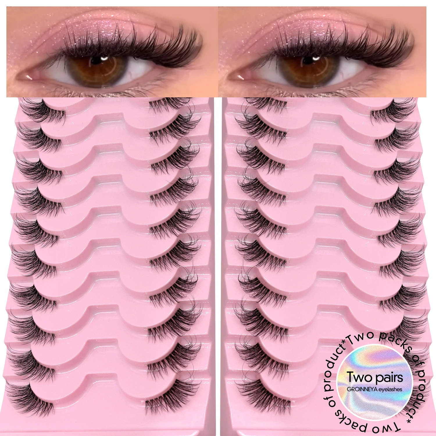 GROINNEYA Two Boxs Half Eyelashes Natural Fluffy Cat Eye Lashes Soft Wispy Faux Mink Lashes Winged End Eye Elongated Eyelashes