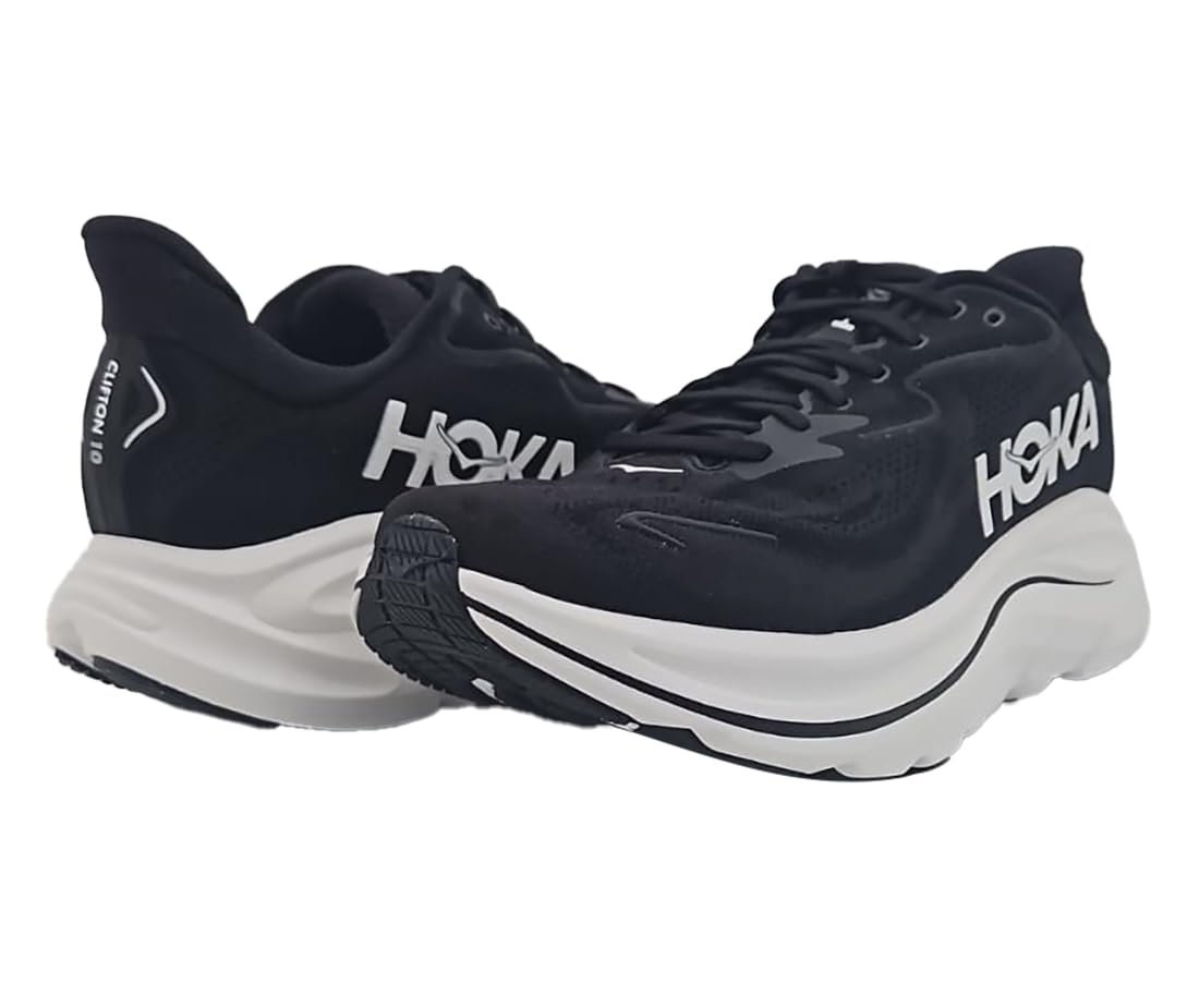 Review HOKA Clifton 10 Mens Shoes, Black/White, 10.