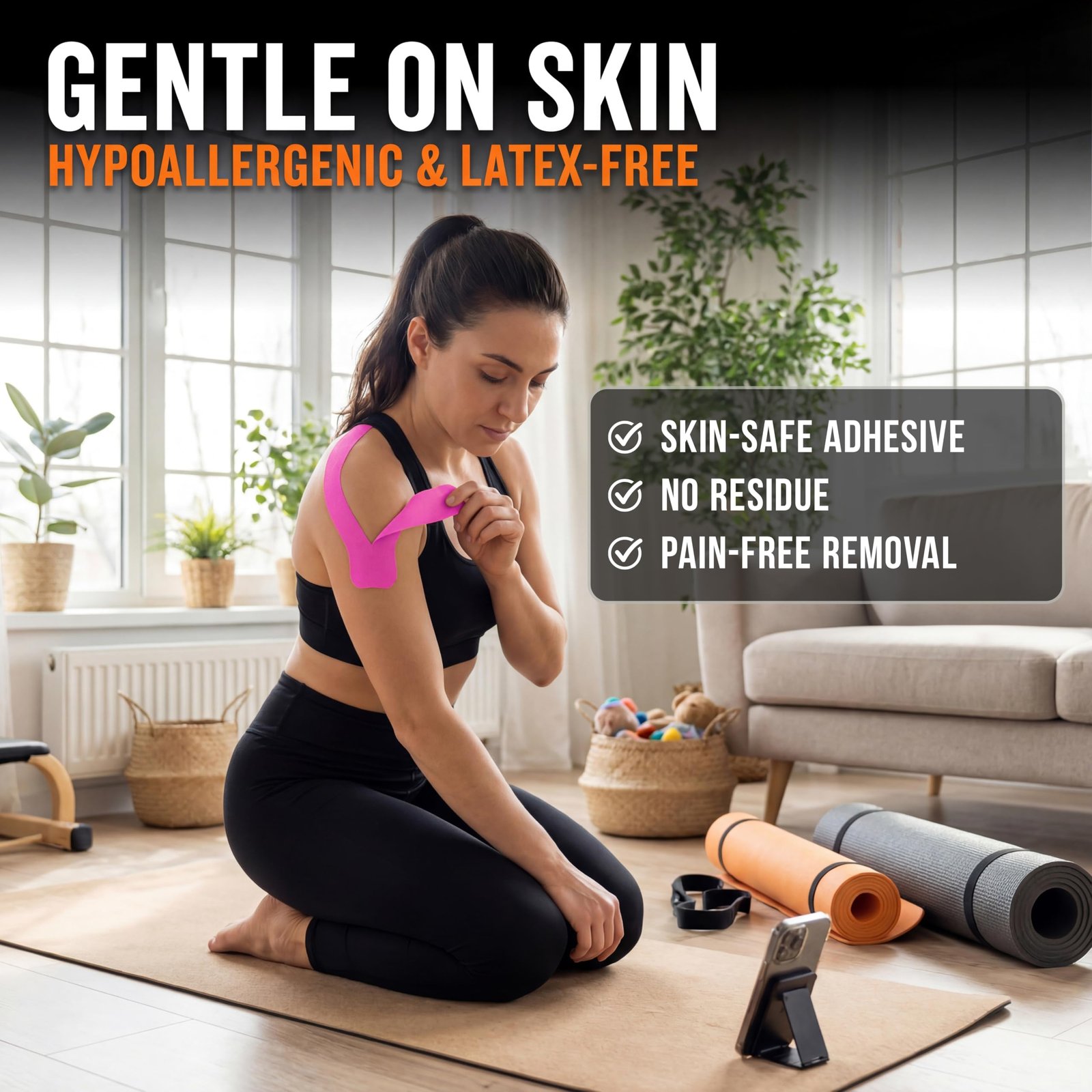 Review Kinesiology Tape-Incredible Support for Athletic Sports and Recovery+Free Taping Guide – Pre-Cut 2 inch 16.4 feet (Wild Pink + Free Taping Guide, Pack of 1).
