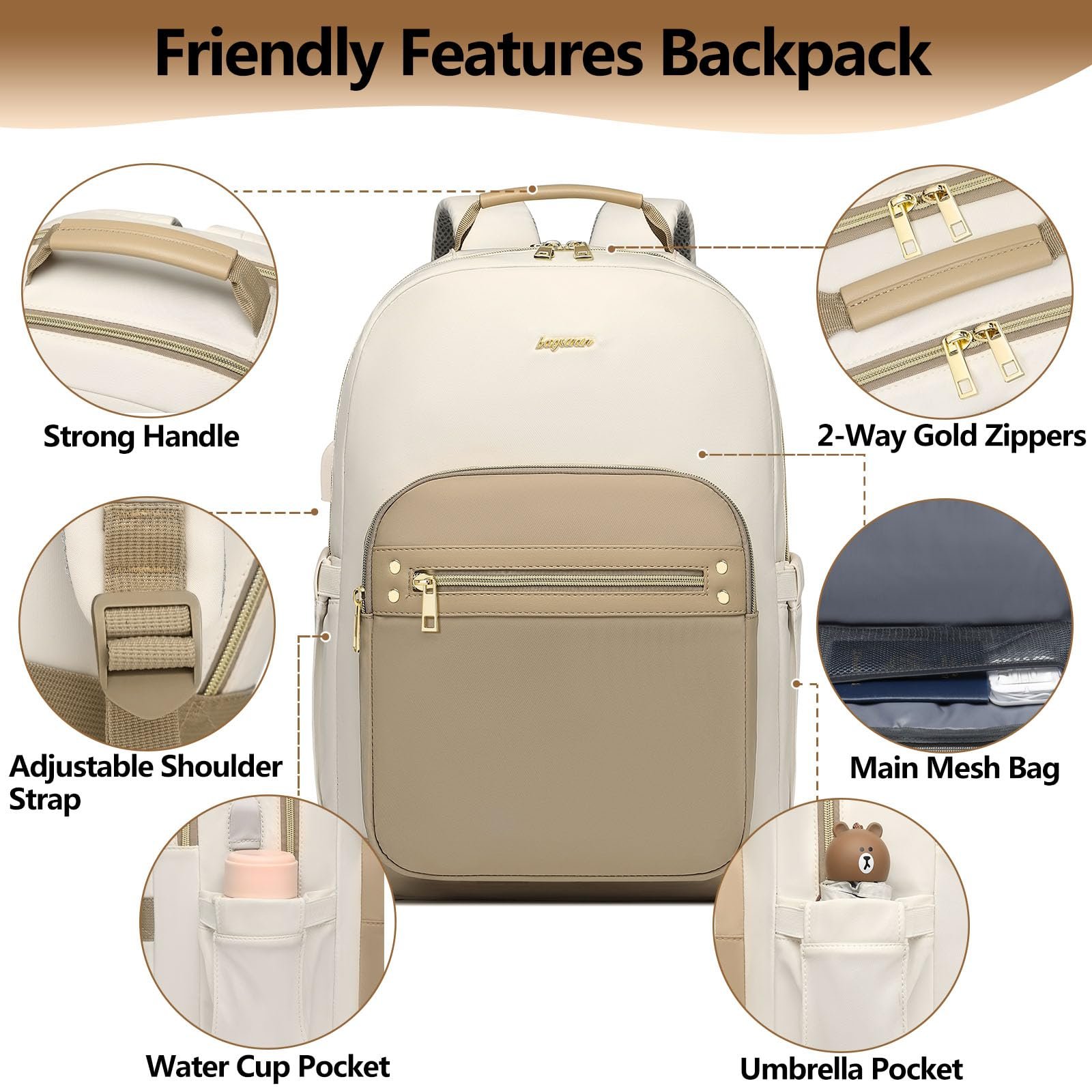 - 【Work Backpack with USB Charging Port】- 15.6-inch Khaki work backpack allows you to keep your phone and tablet charged while on the go. Professional Bag with USB charging port on outside and built-in charging cable inside. It is more convenient and comfortable for you. (POWER BANK IS NOT INCLUDED) BAGSWAN womens laptop backpack is the best choice for your commuting.
