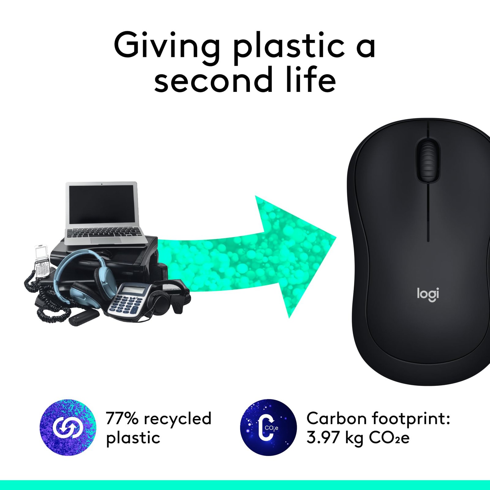 - The plastic parts in M185 include certified post consumer recycled plastic (77% for black and 49% for Charcoal/Grey, Black/Blue Glossy & Black/Red Glossy (6))