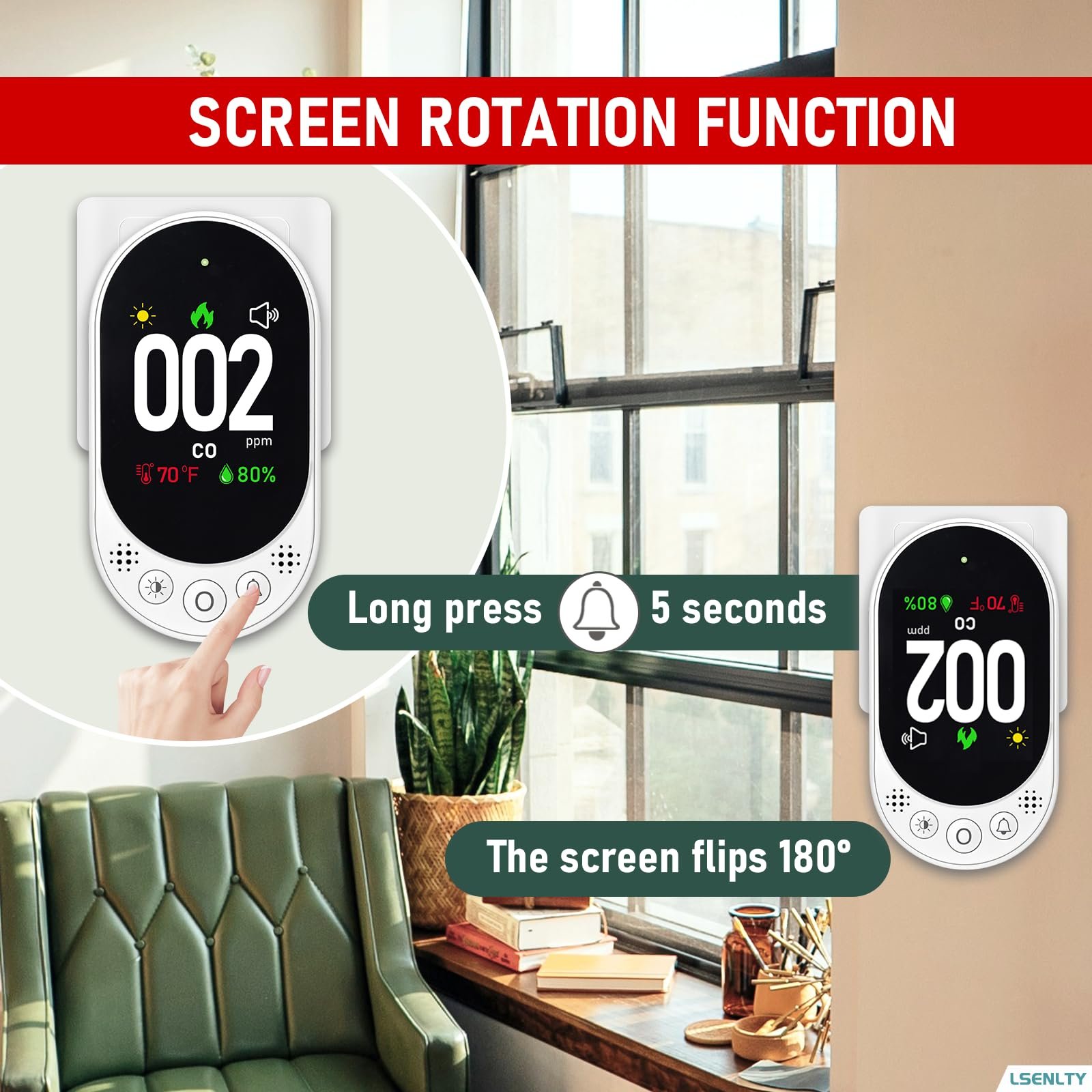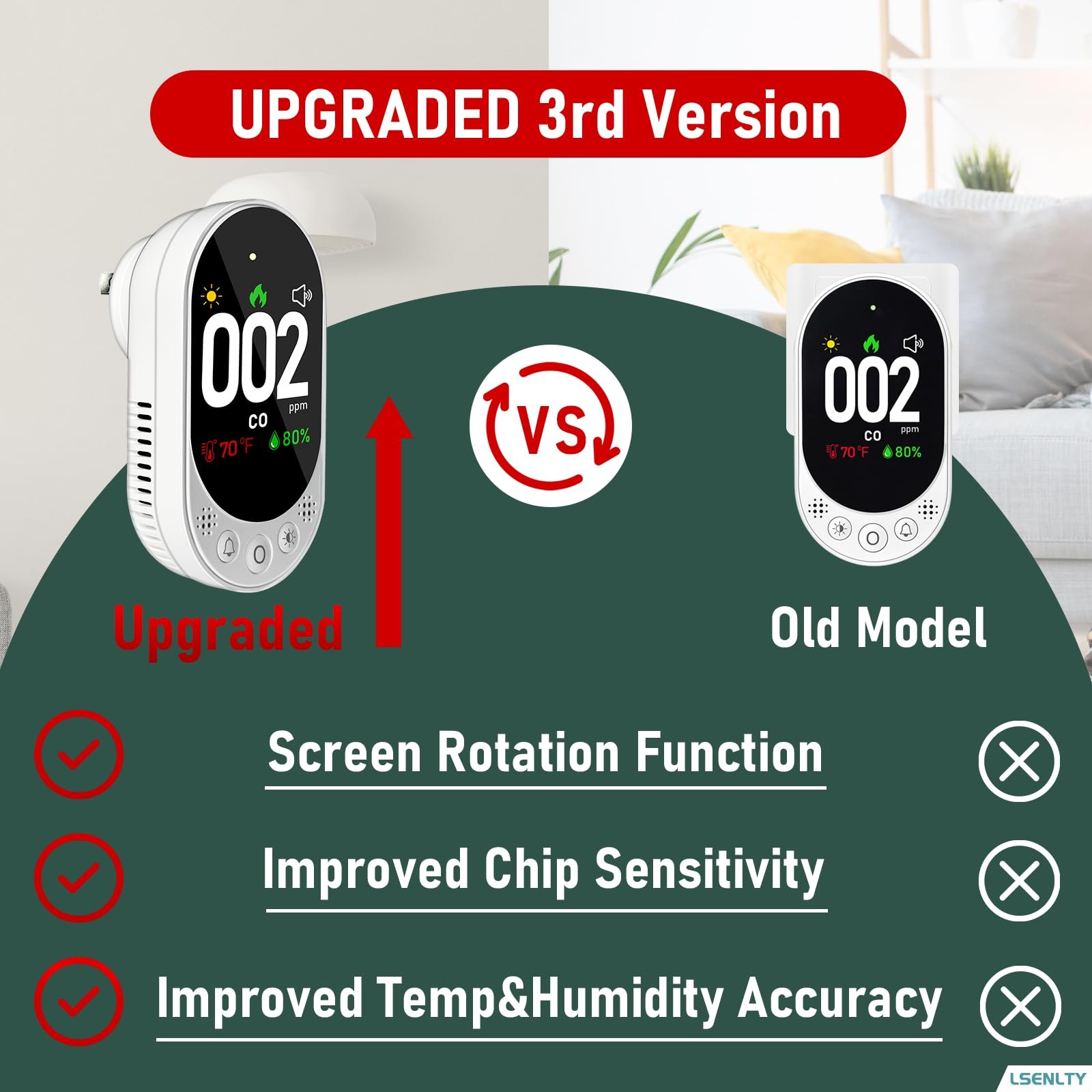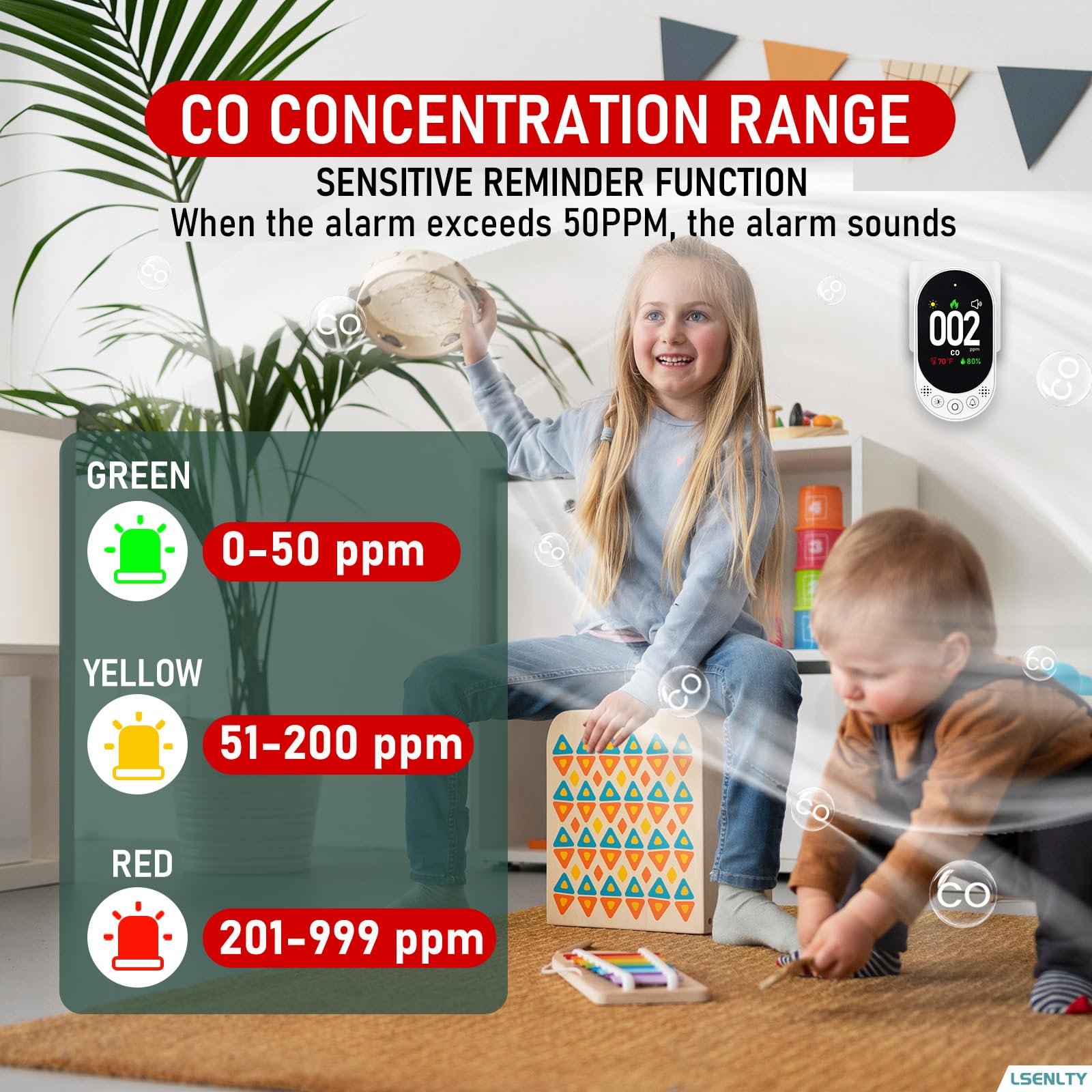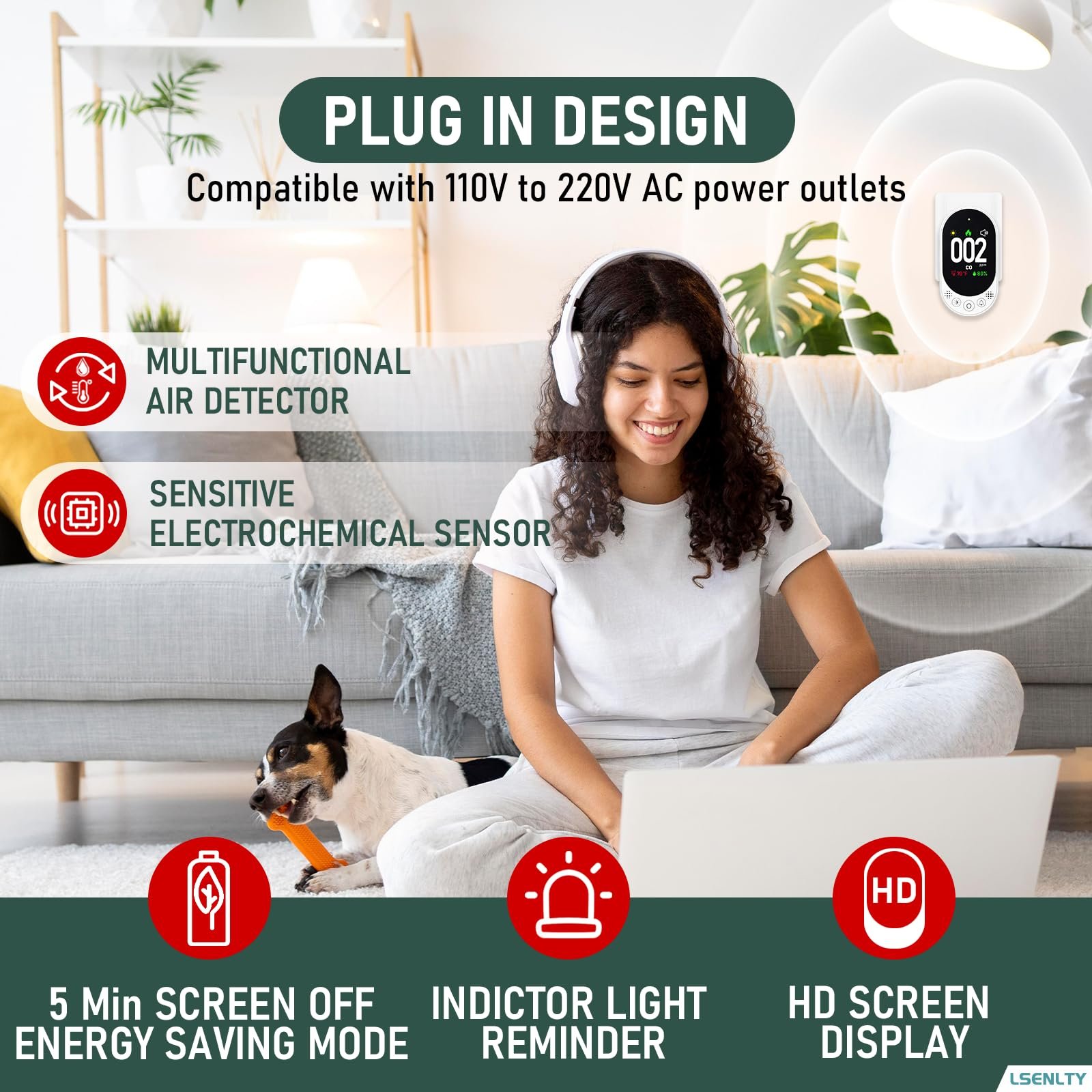 LSENLTY Carbon Monoxide Detector Plug in, Check CO, Temp and Humidity, HD Screen&Indicator Visual&Audible Alert for Home RV Camping