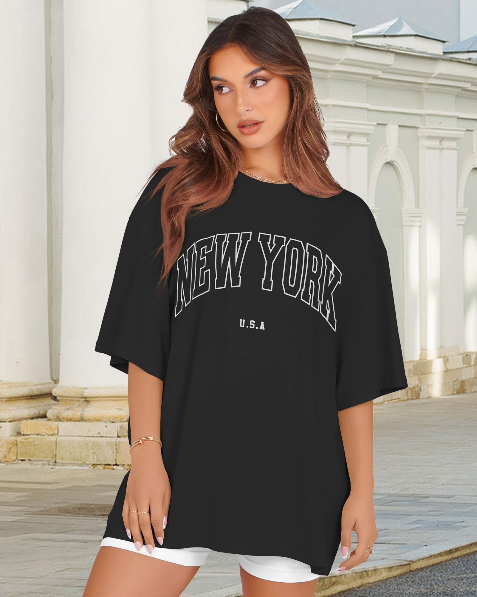 Review rosemia Oversized Tshirts for Women Summer Short Sleeve Round Neck Graphic Tee Shirt, Black New York, L.