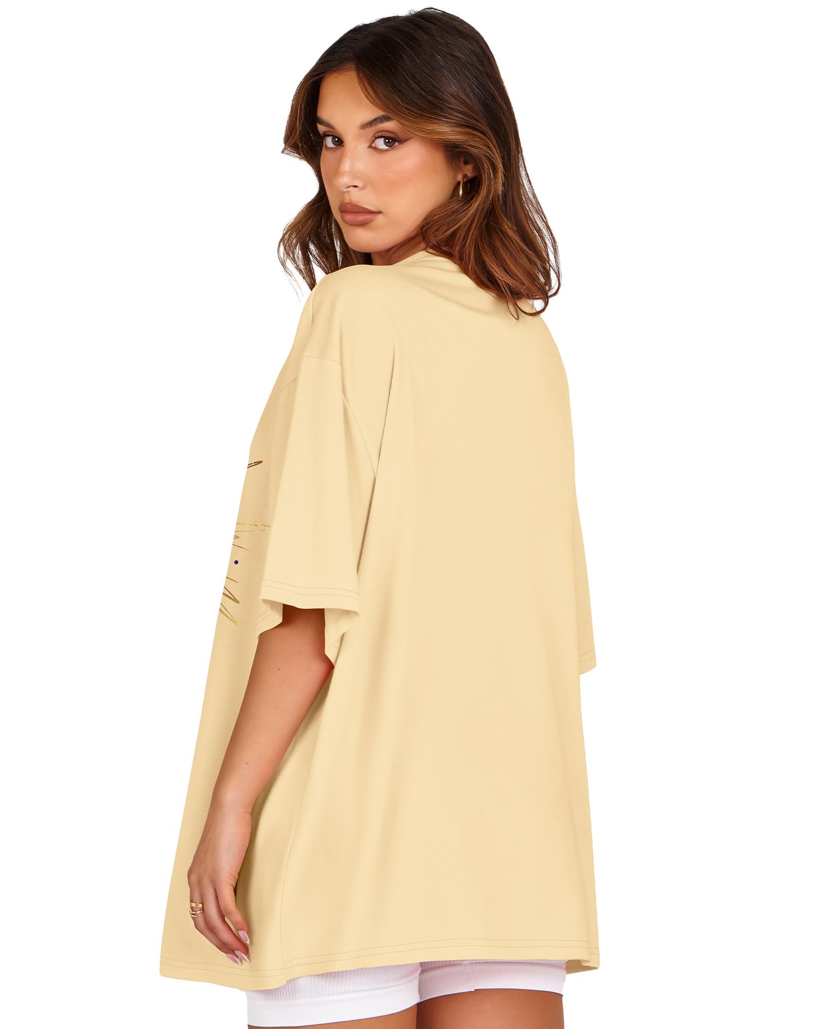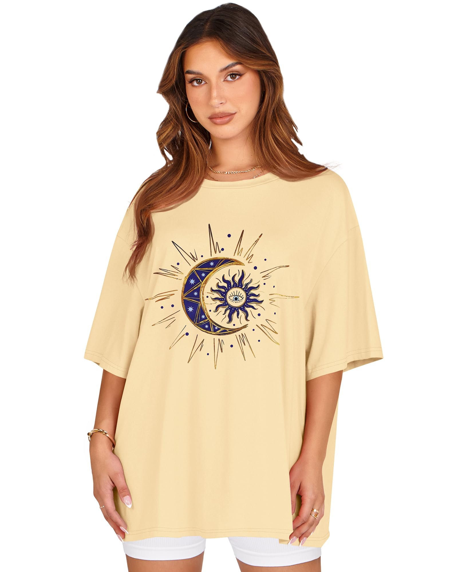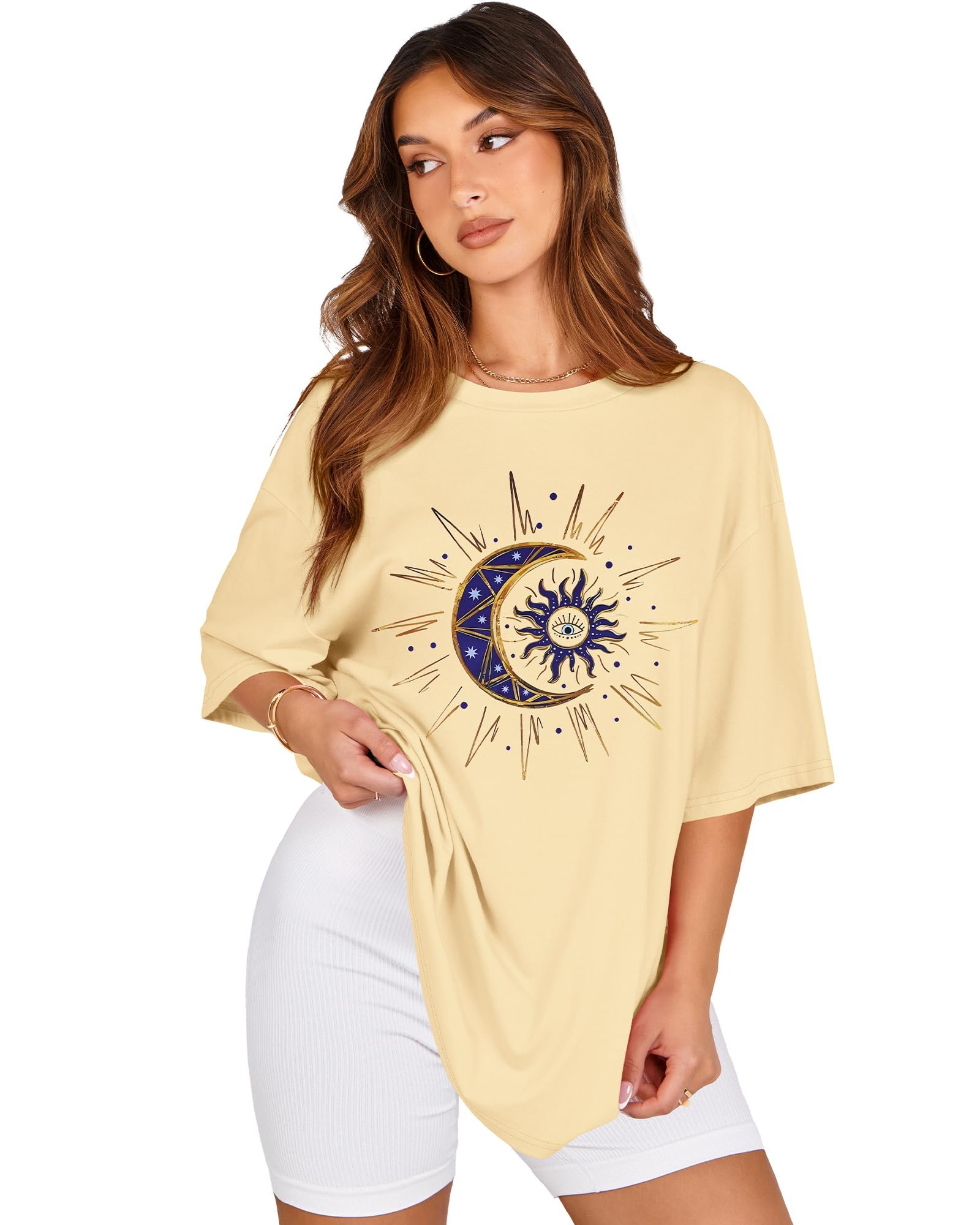 Review rosemia Womens Oversized Tshirt Graphic Tees Crew Neck Summer Short Sleeve Loose Fit Tops, Beige Sun Moon, L.