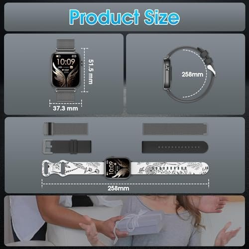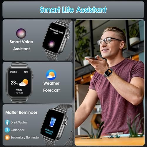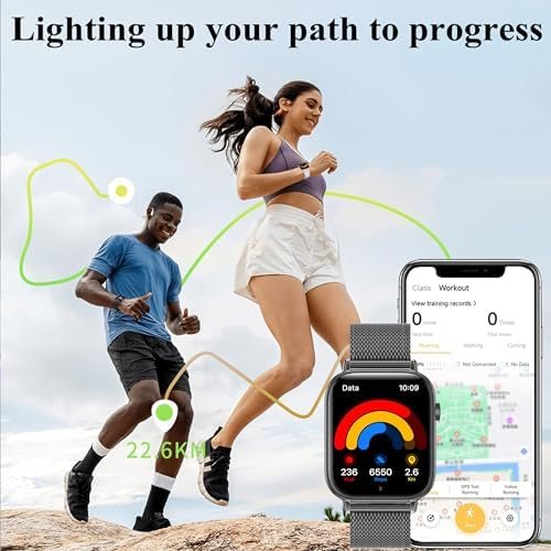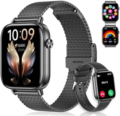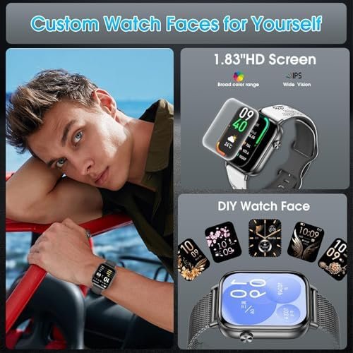 • [1.83-inch Customizable HD Screen & 2 Bands] Unlock limitless style with our 1.83 HD touchscreen while 1 feather – light changeable bands silicone handle sweaty fitness sessions and Daily running, Without chafing. Elevate your presence at client meetings or weddings with the scratch-resistant black steel band, its glow whispering luxury without screaming for attention – because true elegance works silently.