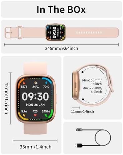 | Feature | IP68 Waterproof & Long Battery Life: This smartwatch is equipped with an IP68 waterproof rating, allowing you to wear it during hand washing, face washing, or intense workouts without worry. However, it is not recommended for use during diving, swimming, bathing, or in saunas. The energy-efficient design allows for 7-15 days of continuous use on a single charge, with a standby time of over 20 days, reducing the need for frequent recharging.If you have sensitive skin, please perform a patch test before wearing the product for extended periods. |