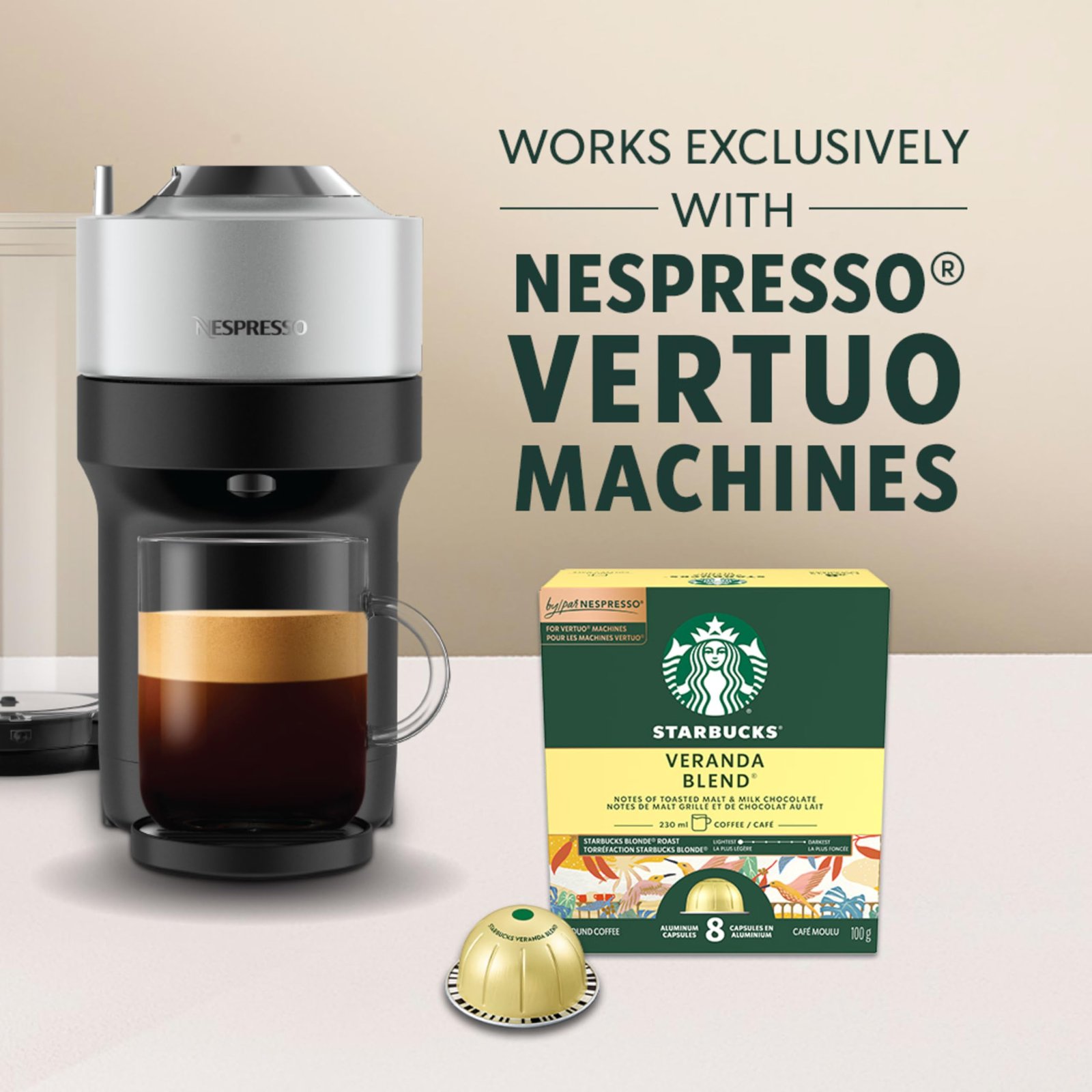 - Brew Size: Each STARBUCKS capsule for NESPRESSO VERTUO machines easily brews 230mL of coffee
