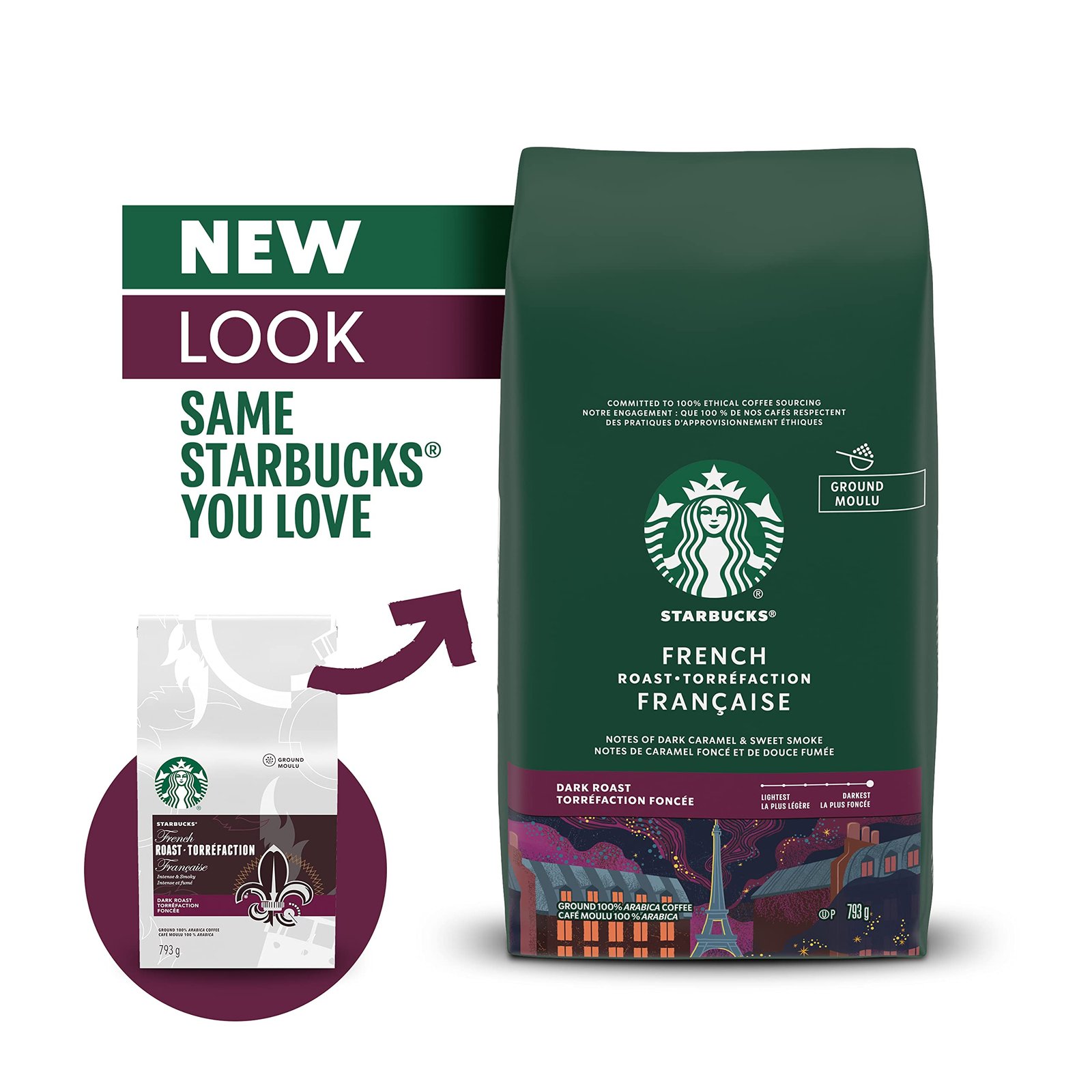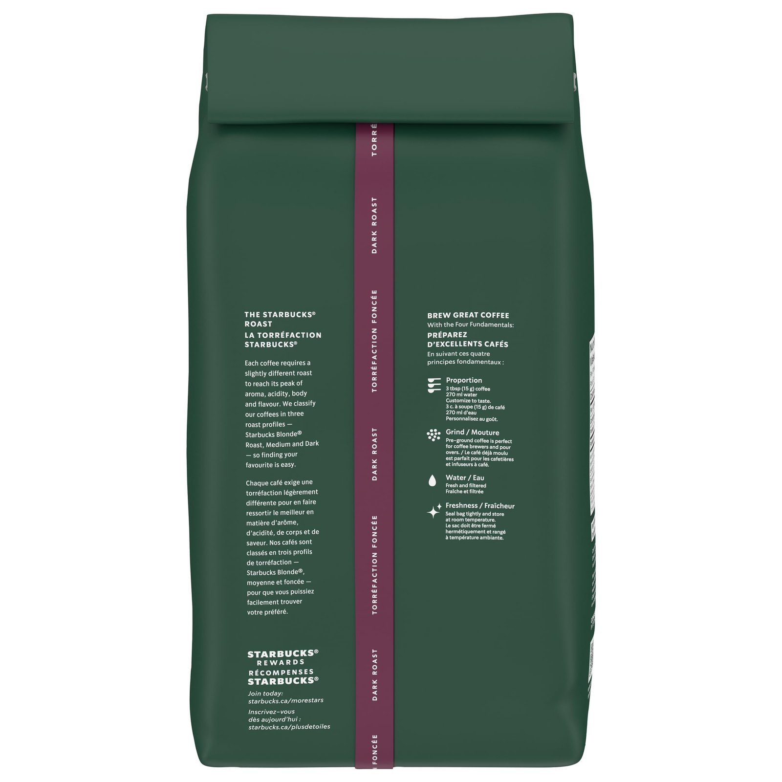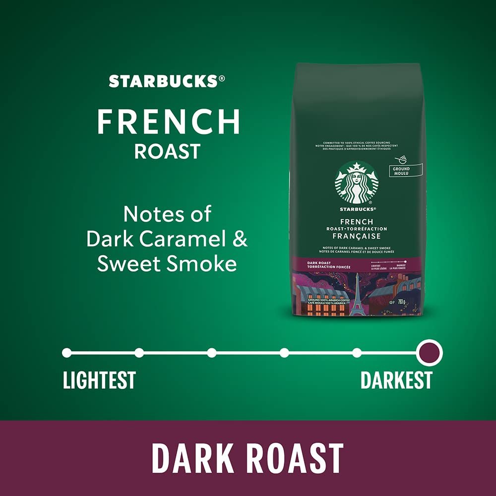 • Starbucks ground coffee French roast is the darkest roast of our beans