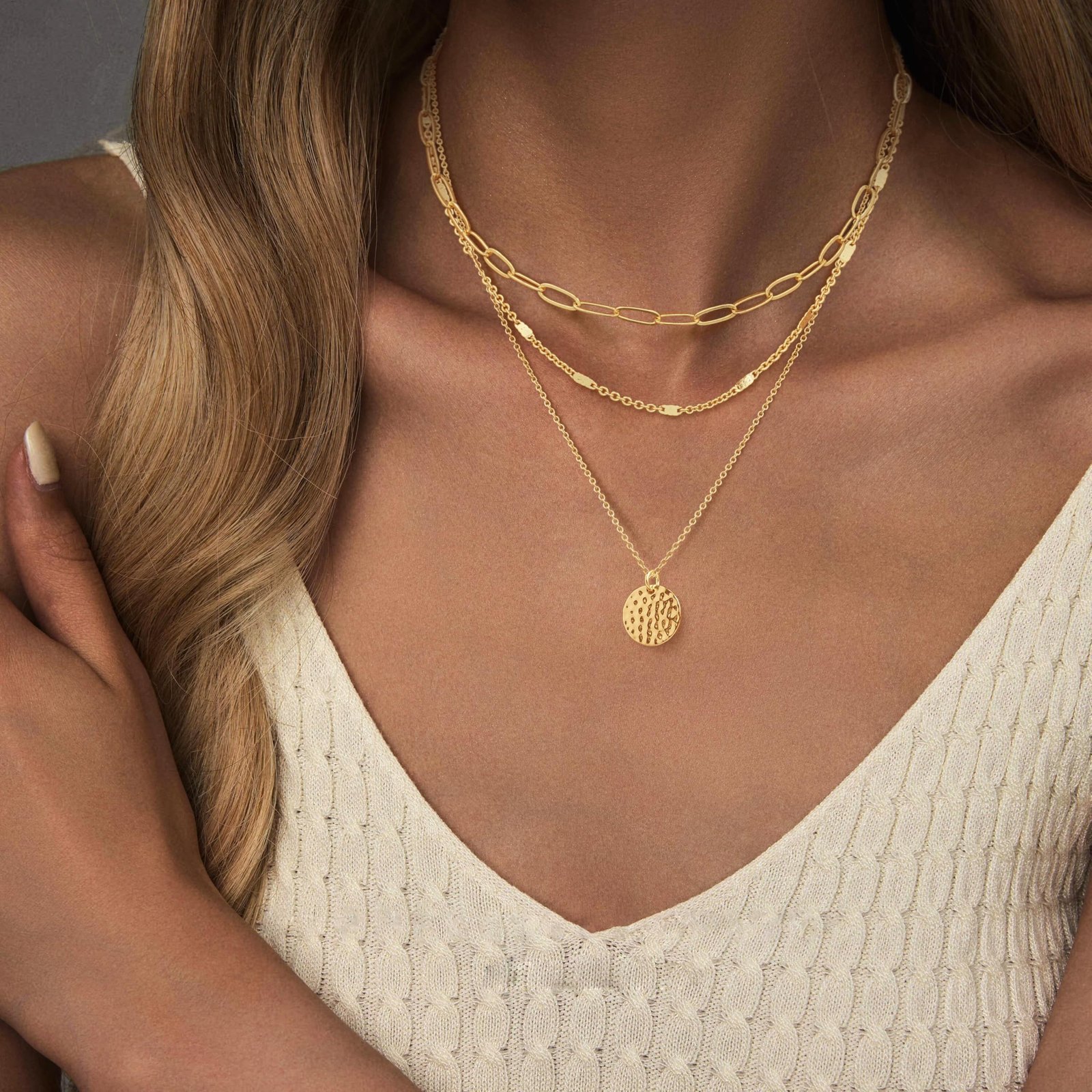 - Adjustable Sizes – Includes: ①Paperclip chain: 14” + 2” extender ②Geometric square link chain: 15” + 2” extender ③Disc pendant necklace: 16.5” + 2” extender. Each with a reliable lobster clasp for secure and comfortable wear